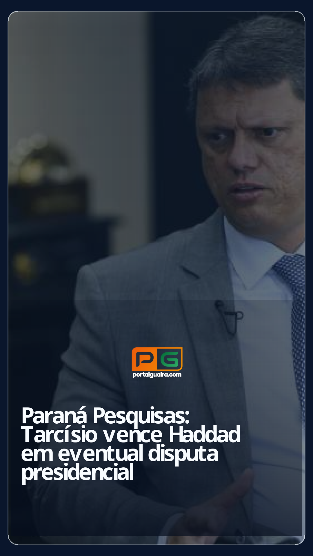 O governador de São Paulo, Tarcísio de Freitas (Republicanos), derrotaria o ministro da Fazenda, Fernando Haddad (PT), em uma eventual disputa presidencial em 2026, segundo levantamento do instituto Paraná Pesquisas contratado pelo PL e divulgado nesta terça-feira (18).