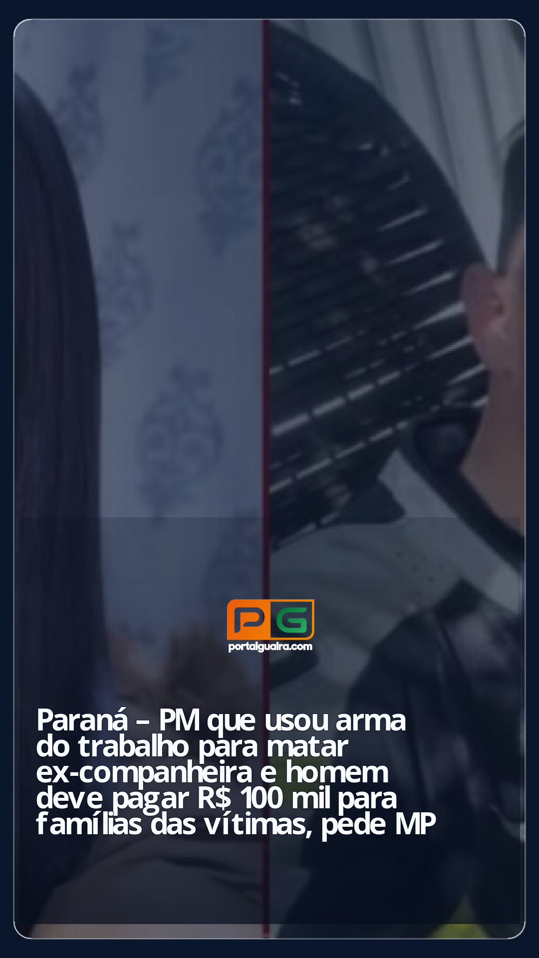 O policial militar Gustavo Pereira, de 31 anos, foi denunciado pelo Ministério Público do Paraná (MP-PR) por feminicídio e homicídio qualificado. A denúncia foi divulgada na sexta-feira (13) e também solicita que ele pague indenização de R$ 100 mil para os familiares das duas vítimas.