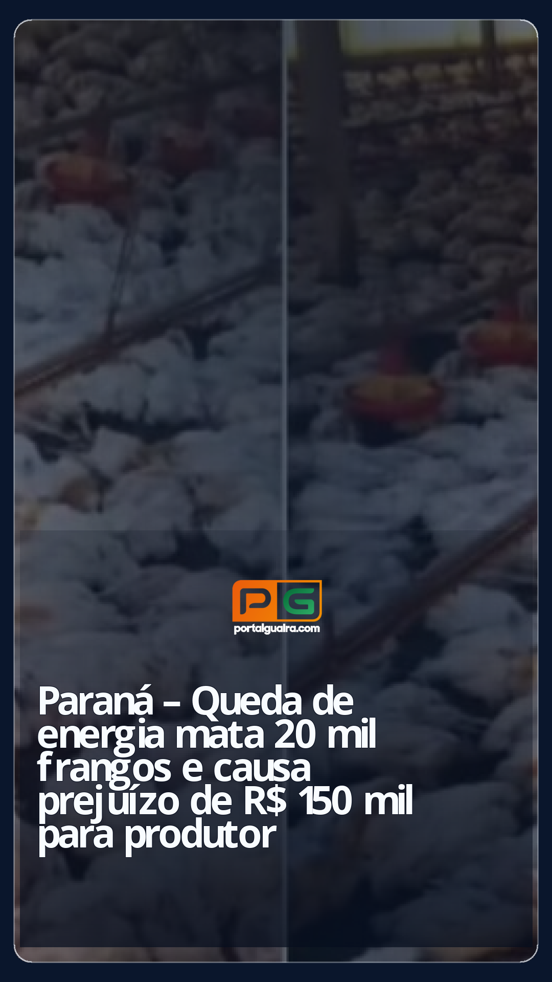Uma queda de energia provocou a morte de 20 mil frangos e um prejuízo estimado em R$ 150 mil para uma família de produtores rurais de São Miguel do Iguaçu, no oeste do Paraná.