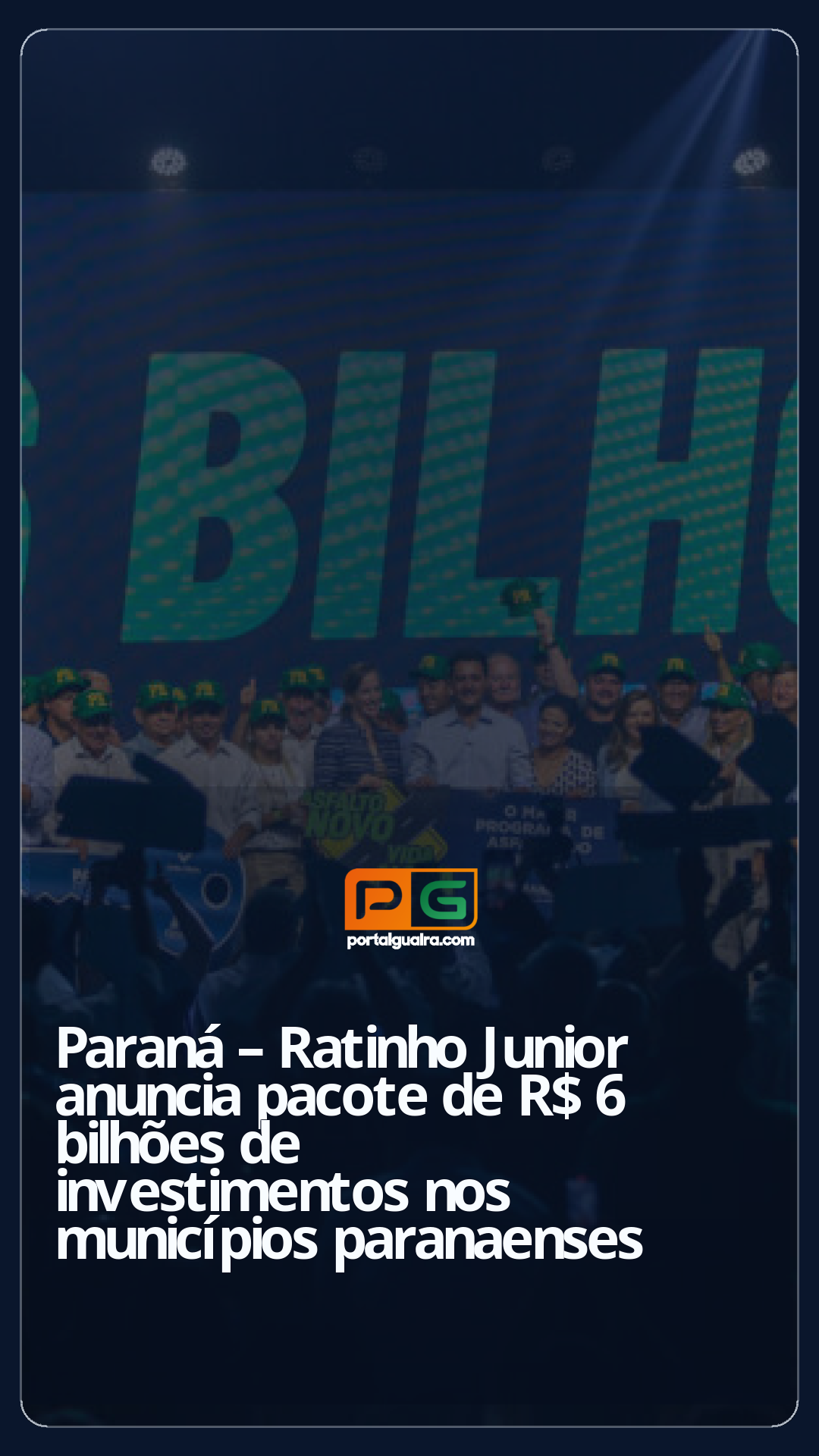 O governador Carlos Massa Ratinho Junior anunciou nesta sexta-feira (14), a liberação de um pacote histórico de R$ 6 bilhões em investimentos nos municípios do Paraná. Os aportes são destinados a programas de pavimentação urbana e rural, habitação, iluminação pública e equipamentos para as 399 cidades do Estado.