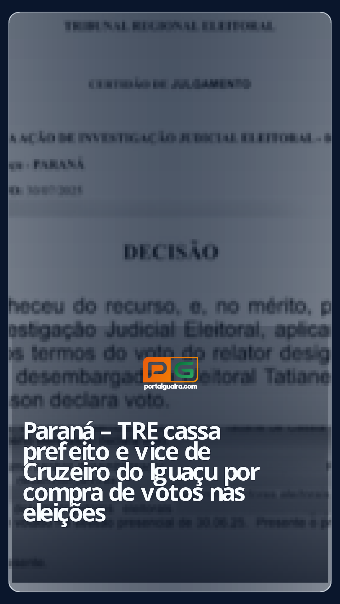 O Tribunal Regional Eleitoral do Paraná cassou os diplomas do prefeito e da vice-prefeita de Cruzeiro do Iguaçu, por compra de votos.