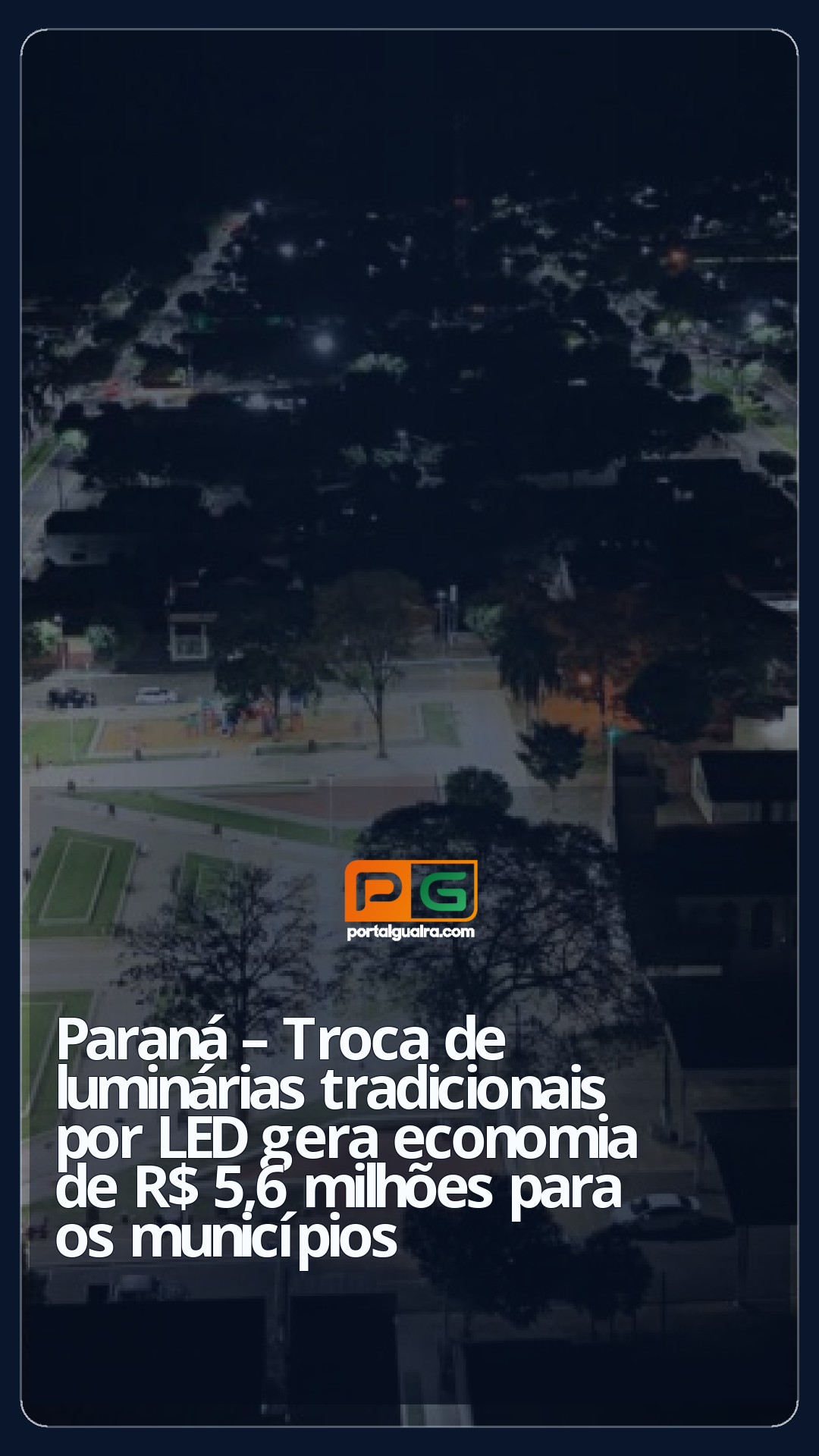 Inicialmente parte importante do programa Asfalto Novo, Vida Nova, lançado em abril de 2023, a substituição de 100% das luminárias de municípios paranaenses por iluminação de LED já resulta em economia anual de R$ 5.625.203,67 para cidades de todas as regiões do Estado, com redução observada de 30% nos gastos nas estruturas trocadas em funcionamento. Desde fevereiro deste ano, a iniciativa ganhou nome próprio – o Ilumina Paraná, voltado à iluminação pública.