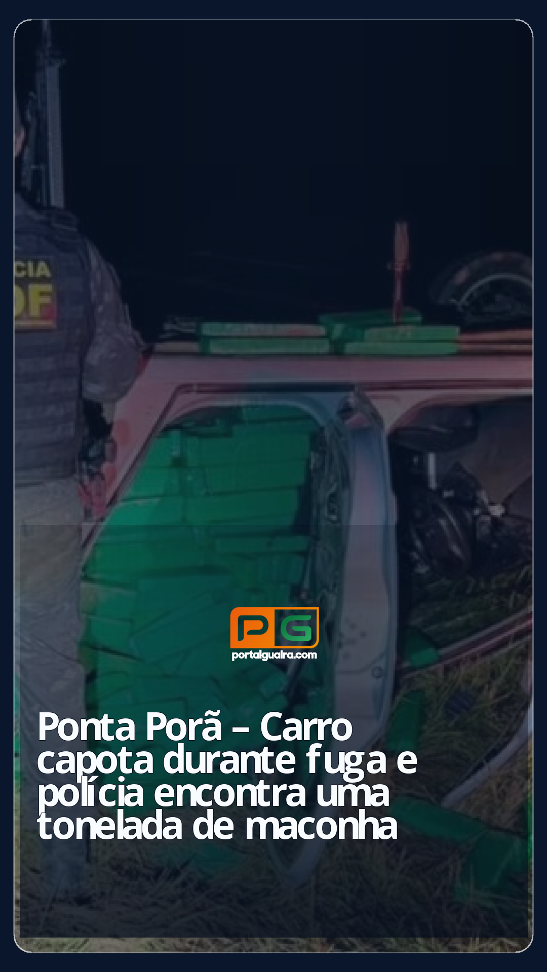 Um homem, de 20 anos, foi preso após tentar fugir de um bloqueio policial e capotar o carro que dirigia, transportando uma tonelada de maconha. A apreensão ocorreu na rodovia MS-164, em Ponta Porã (MS).