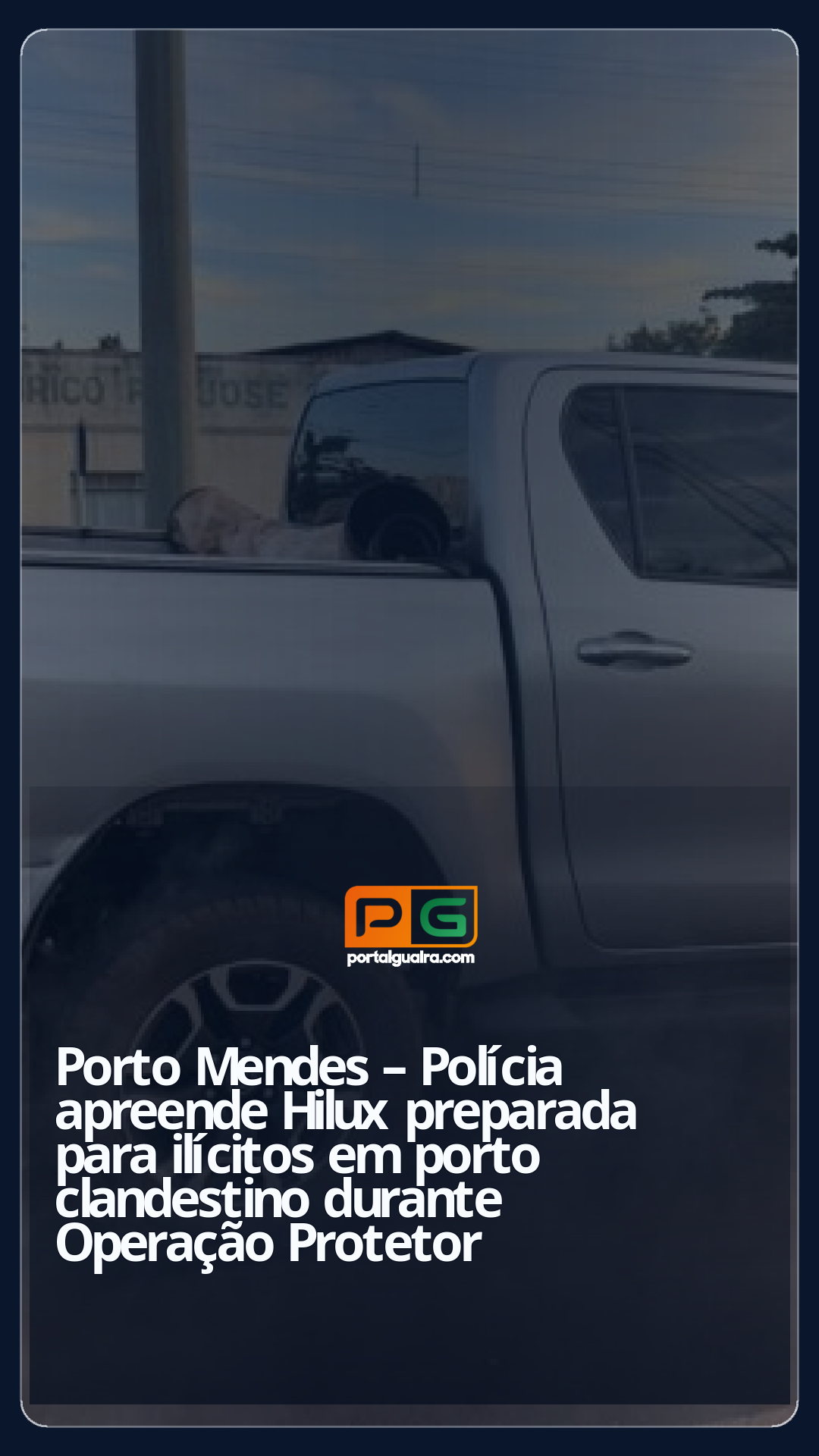 Na tarde de sexta-feira (05), durante a Operação Protetor, policiais federais do Nepom/PF e policiais militares do BPFron/PMPR realizavam patrulhamento no distrito de Três Irmãs quando identificaram marcas de pneus que levavam a um porto clandestino. Ao adentrar o local para verificar possíveis ilícitos, as equipes abordaram um veículo Toyota Hilux que entrou na área.