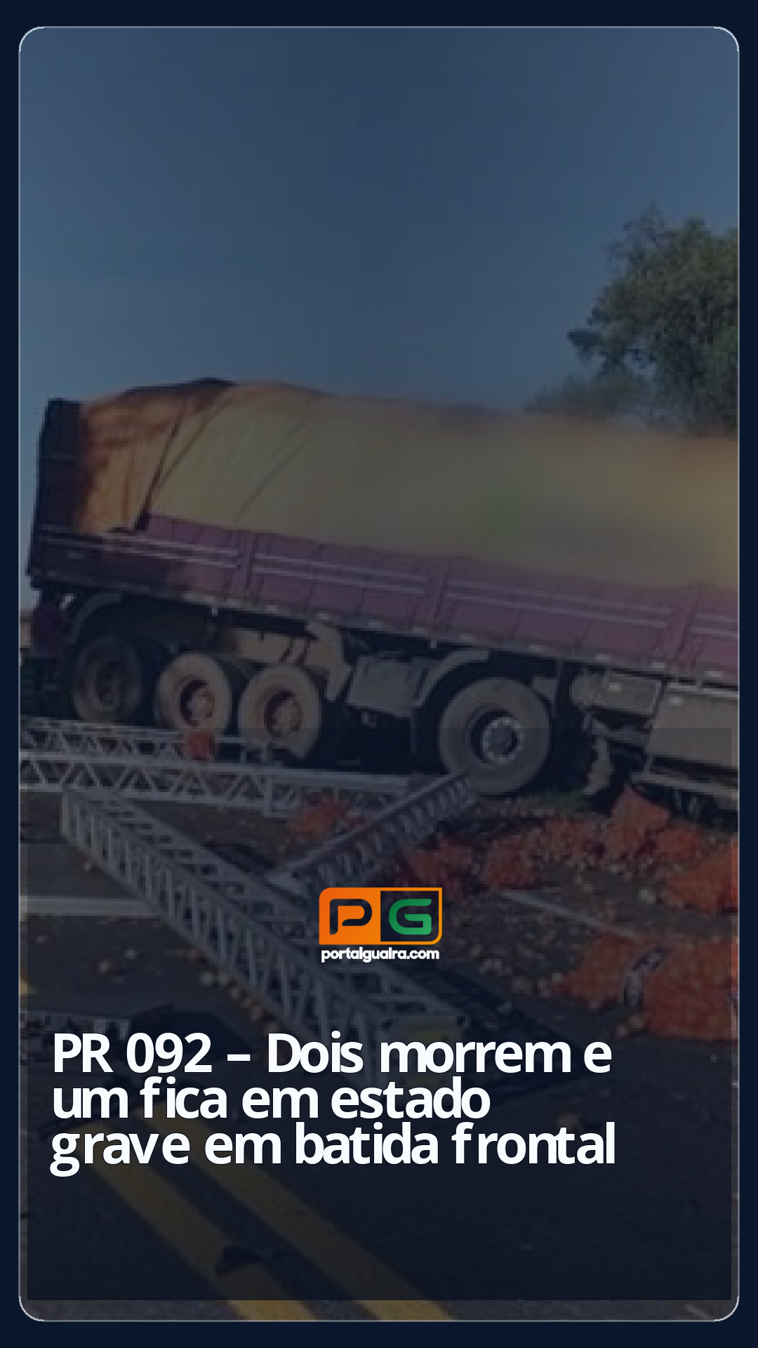 Duas pessoas morreram em grave acidente na PR-092, em Arapoti, nos Campos Gerais, na manhã de domingo (23). Outra vítima ficou gravemente ferida.