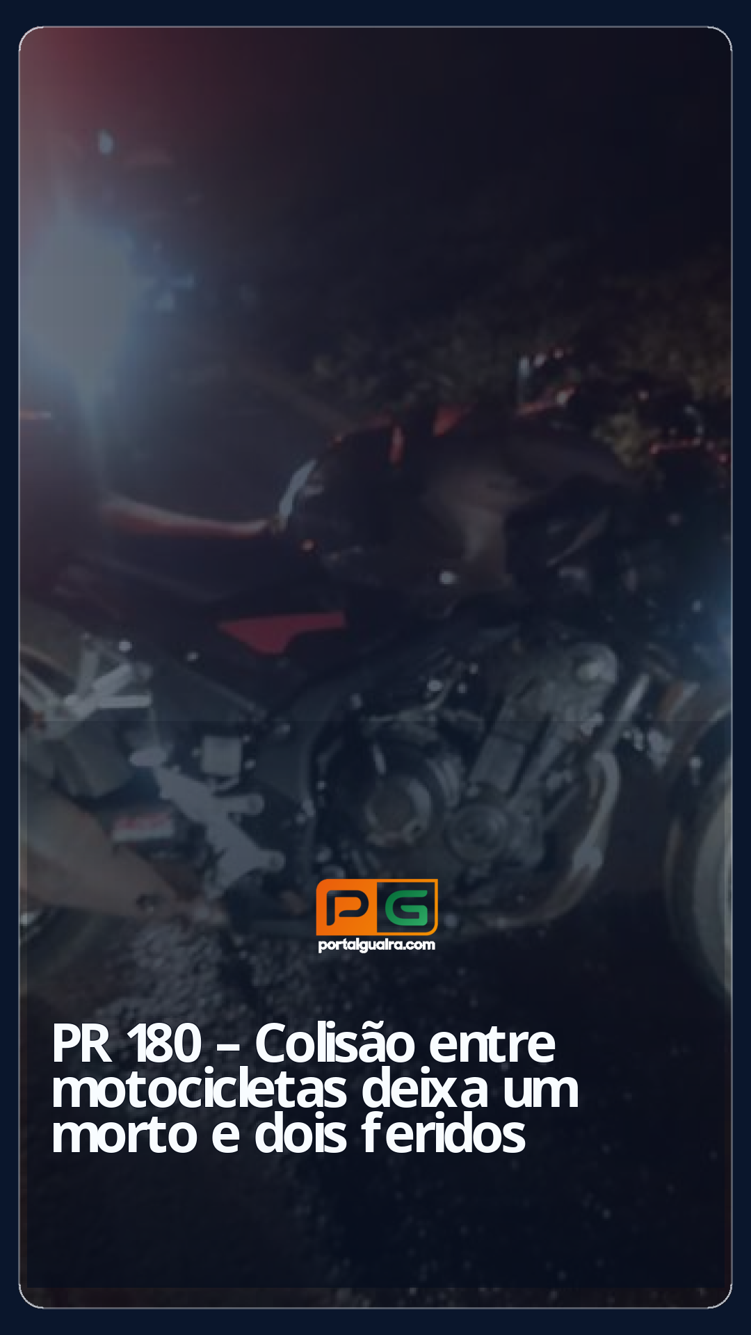 Um grave acidente envolvendo duas motocicletas foi registrado na noite de sábado (5) na rodovia PR-180, em trecho que liga o distrito de Juvinópolis ao entroncamento com a PR-484, no município de Boa Vista da Aparecida. A batida aconteceu por volta das 20h, no quilômetro 3991, e resultou na morte de um dos condutores ainda no local.