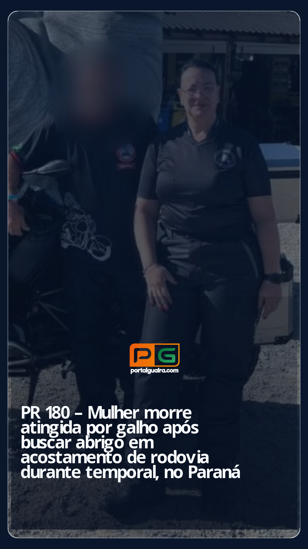 Helena Araújo, de 48 anos, morreu ao ser atingida pelo galho de uma árvore que caiu durante o temporal que atingiu o Paraná, no domingo (21). Ela estava pilotando uma moto e parou no acostamento da PR-180, entre Guairaçá e Terra Rica, no noroeste do estado, para se abrigar. Neste momento, ocorreu o acidente.