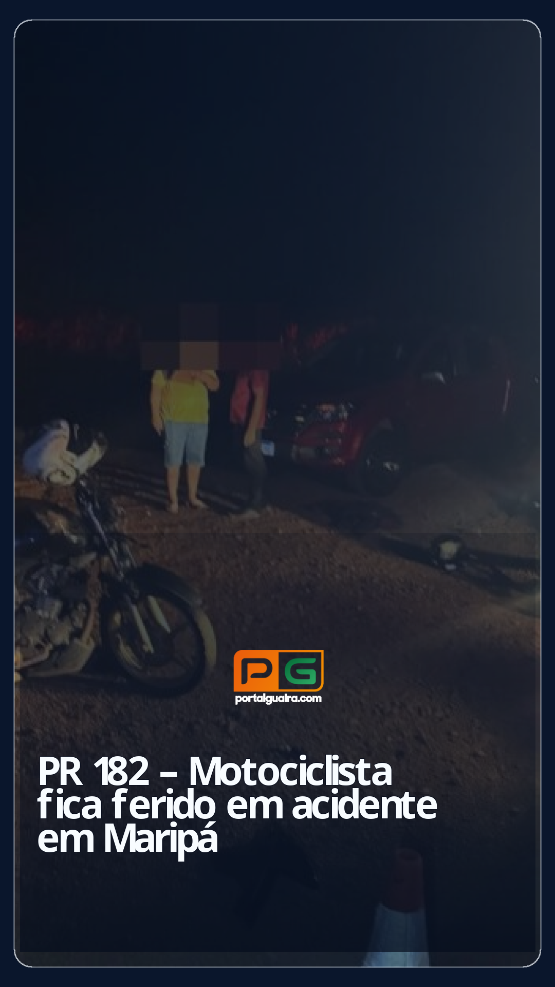 Um motociclista ficou ferido após um acidente de trânsito registrado na noite de sábado (7) na rodovia PR-182, no município de Maripá.