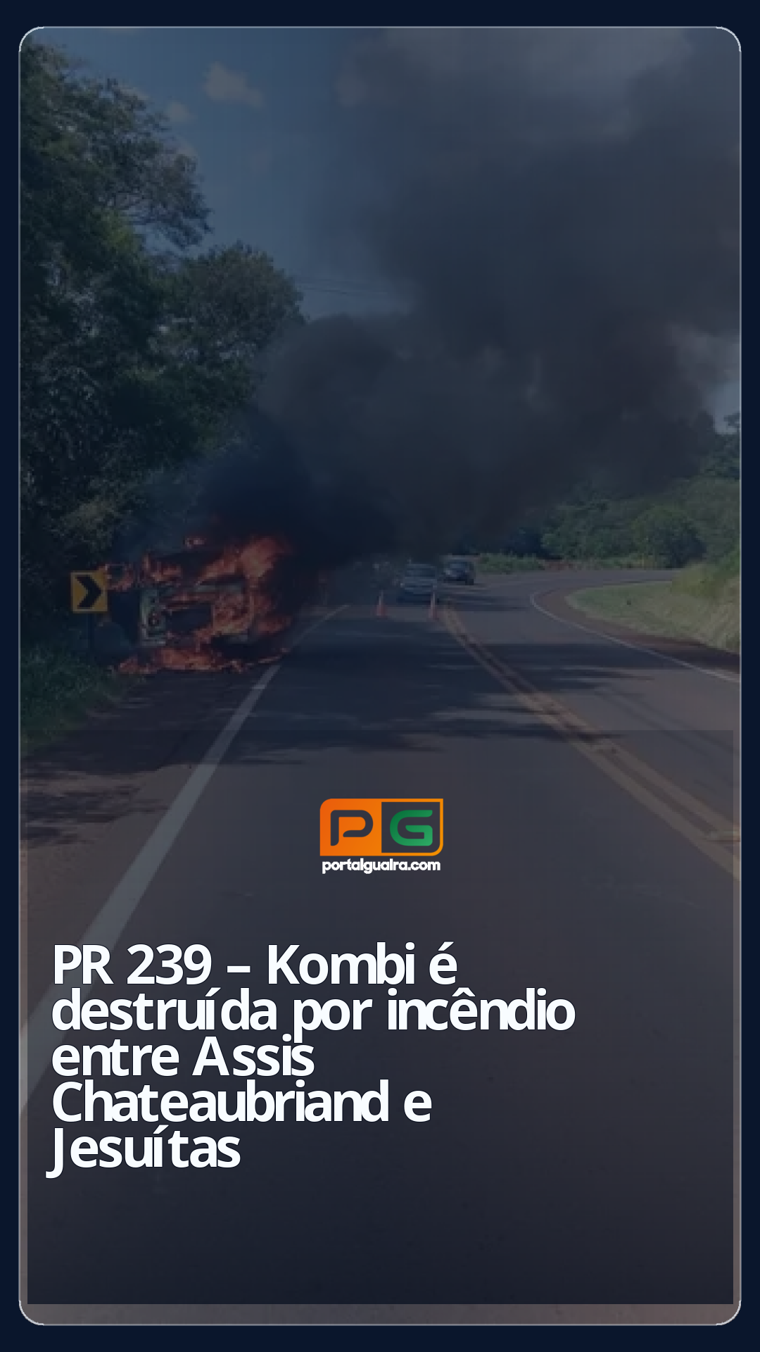 Um veículo VW Kombi foi destruído por um incêndio na tarde de sexta-feira (06), na PR-239, no trecho entre Assis Chateaubriand e Jesuítas, no Oeste do Paraná.