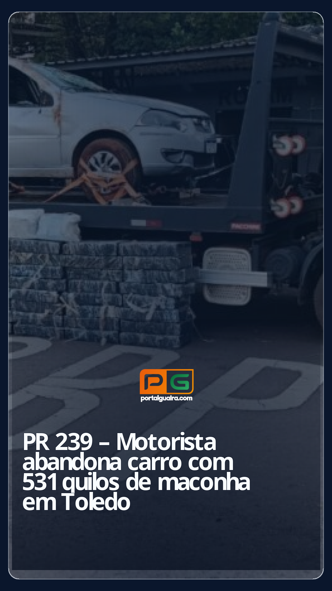Um carro carregado com 531,8kg de maconha foi apreendido na PR-239 em Toledo, no fim da madrugada de sábado (13). A ação foi realizada na saída de Toledo, sentido a Assis Chateaubriand.