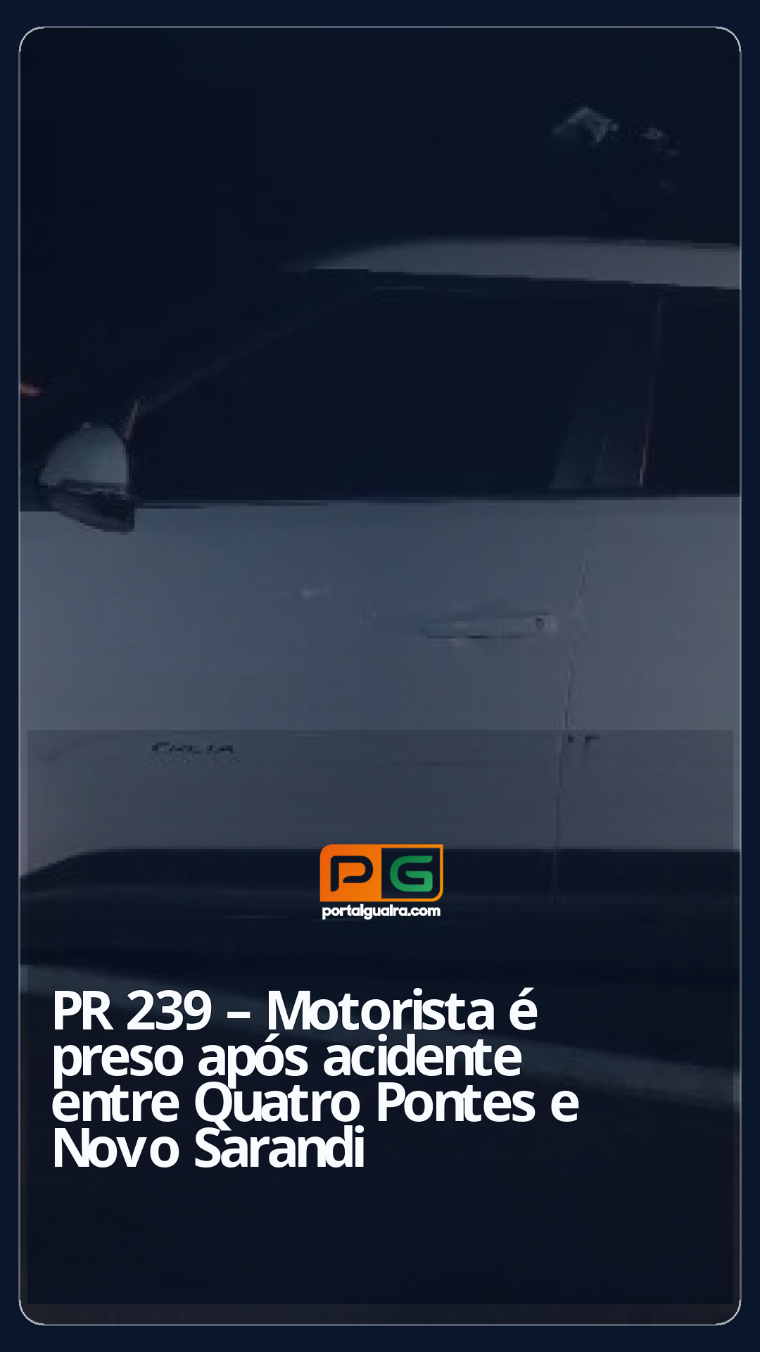 Um acidente envolvendo dois veículos, na noite de sábado (01), na PR-239, no trecho entre Novo Sarandi e Quatro Pontes, resultou na prisão de um dos condutores por embriaguez.