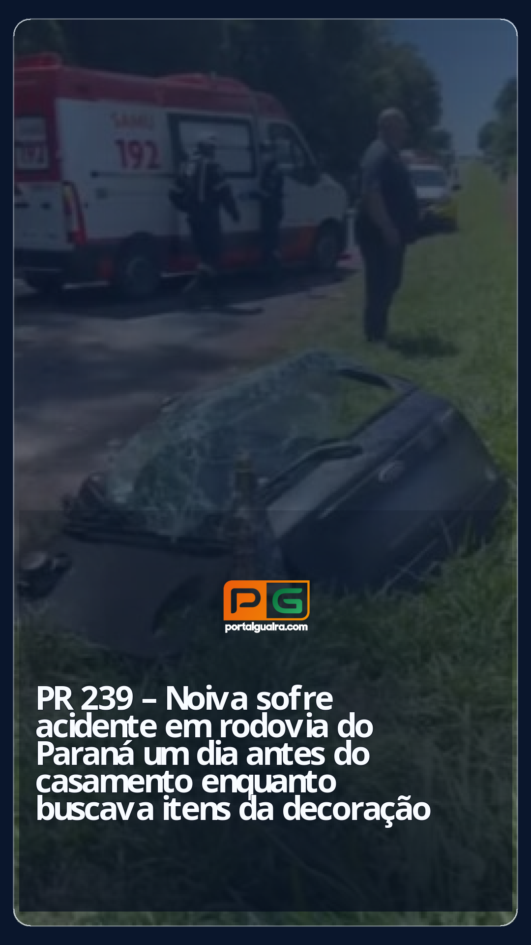 Uma mulher de 29 anos sofreu um grave acidente na PR-239, em Nova Aurora, no oeste do Paraná, um dia antes do próprio casamento, na sexta-feira (6). Apesar do susto e dos ferimentos, a cerimônia foi mantida e ocorreu na manhã de sábado (7).