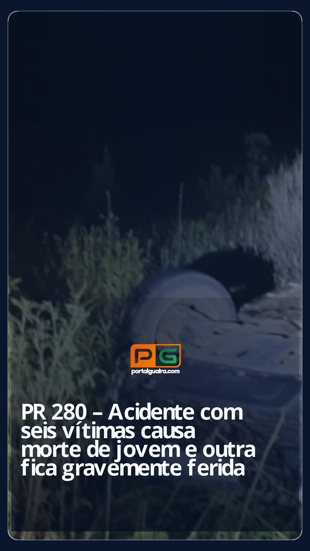 Uma grave batida seguida de capotamento vitimou uma jovem, de 25 anos, na noite de segunda-feira (20), na PR-280, em Palmas, no Centro-Sul do Paraná.
