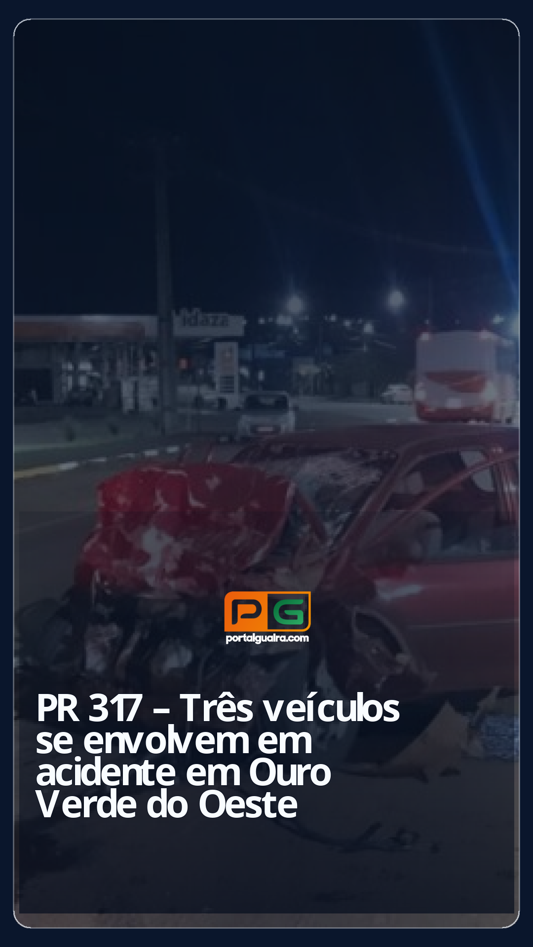 A Polícia Rodoviária Estadual atendeu um acidente envolvendo três veículos na noite de sábado (28) na PR-317, no trecho entre Ouro Verde do Oeste e Toledo, no Oeste do Paraná.