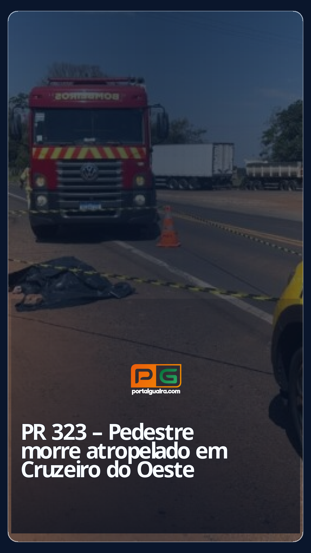 Um homem de 61 anos morreu atropelado na PR-323 em Cruzeiro do Oeste, na tarde de sexta-feira (30).