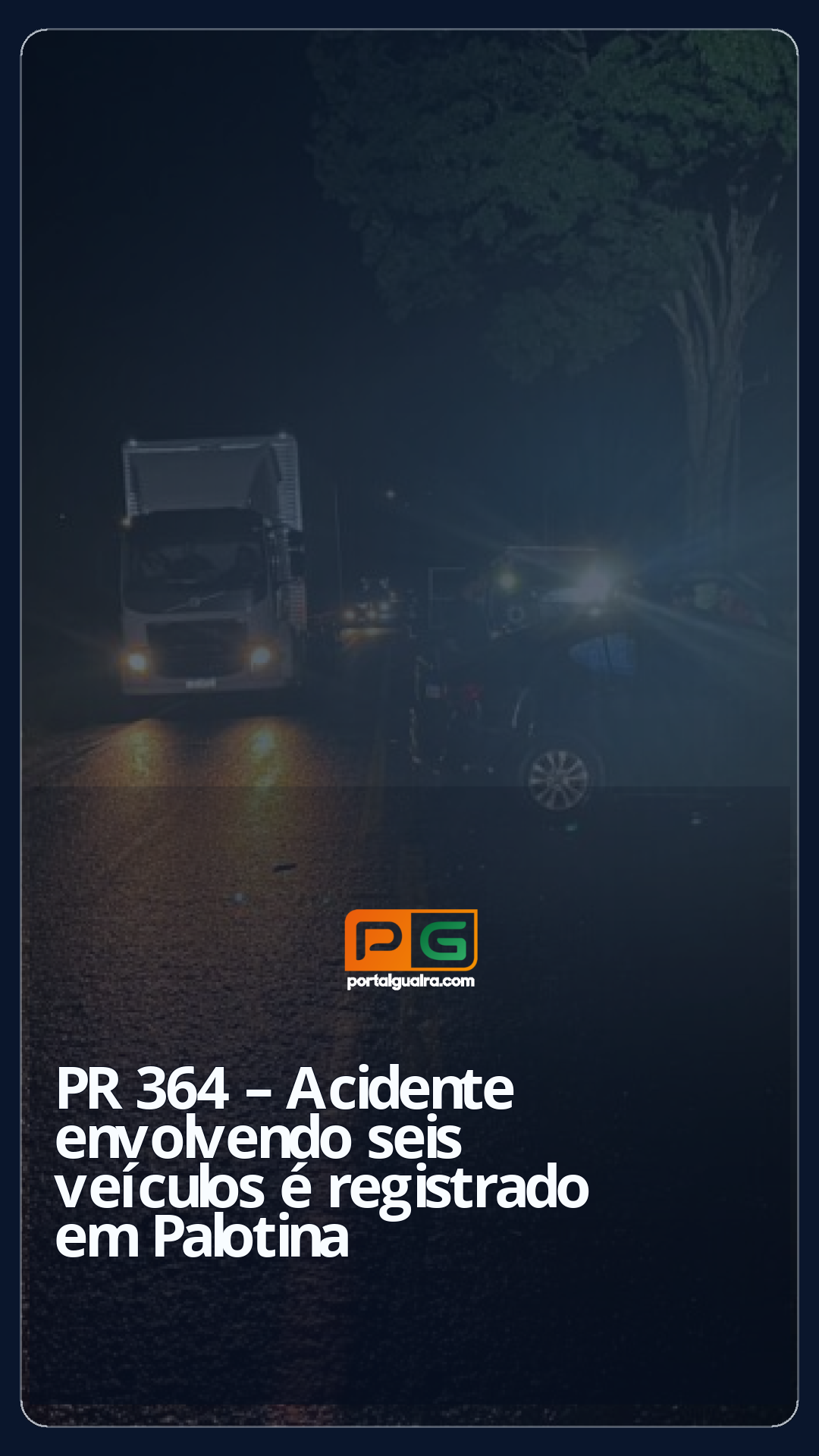 Um acidente de trânsito foi registrado no início da noite de quarta-feira (16), por volta das 18h40, na PR-364, trecho entre Palotina e Terra Roxa, nas proximidades do km 595+300 metros. O tempo estava chuvoso no momento do fato.