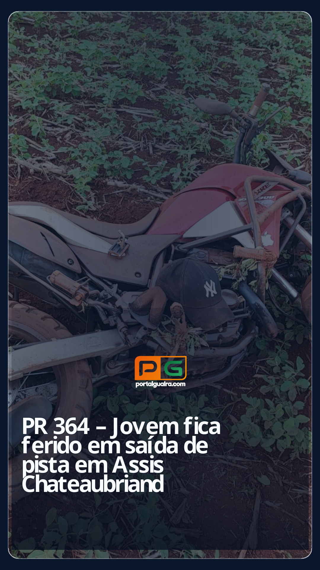 O condutor de uma motocicleta Honda XRE 300, com placas de Assis Chateaubriand, seguia sentido a Assis quando perdeu o controle da direção e saiu da pista pelo lado direito, tombando em meio a uma lavoura.