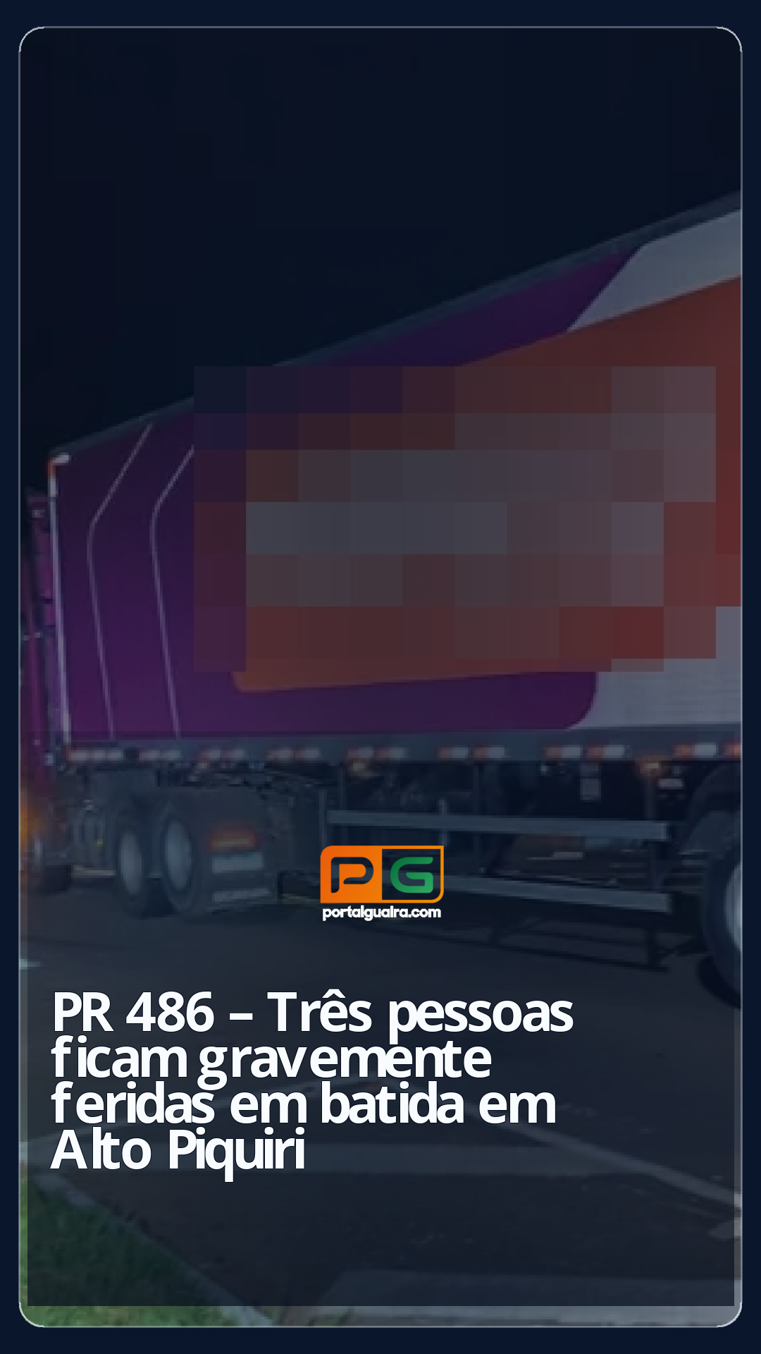 Um grave acidente de trânsito foi registrado na noite de segunda-feira (16), na PR-486, em Alto Piquiri, na região Noroeste do Estado.
