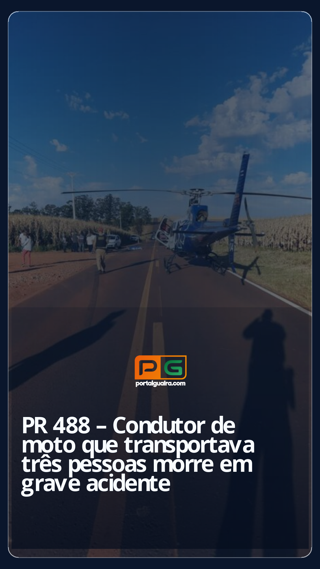 Um grave acidente de trânsito registrado na tarde de domingo (20) resultou na morte de um motociclista na PR-488, em Vera Cruz do Oeste, no trecho que liga o município a Diamante d’Oeste.