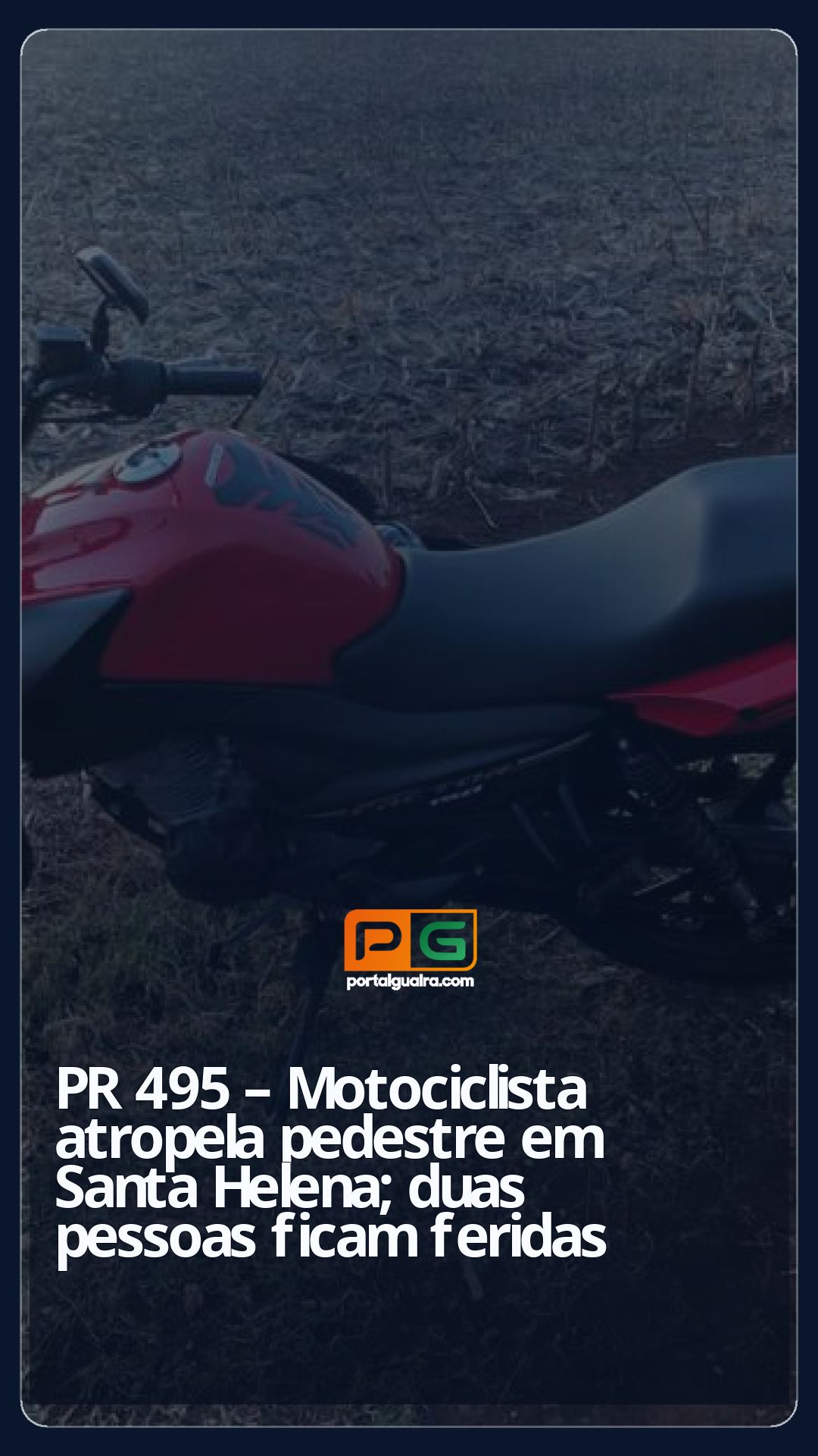 Um atropelamento registrado na manhã de sábado (2) deixou duas pessoas feridas na PR-495, em Santa Helena, no Oeste do Paraná. O acidente ocorreu por volta das 6h, no Km 107+400 da rodovia, no trecho entre a PR-317 e o município de Entre Rios do Oeste.