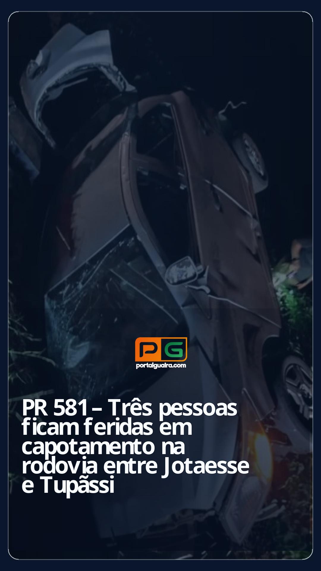 Na noite de domingo (30), um capotamento deixou três pessoas feridas na PR-581, no trecho entre Jotaesse e Tupãssi.