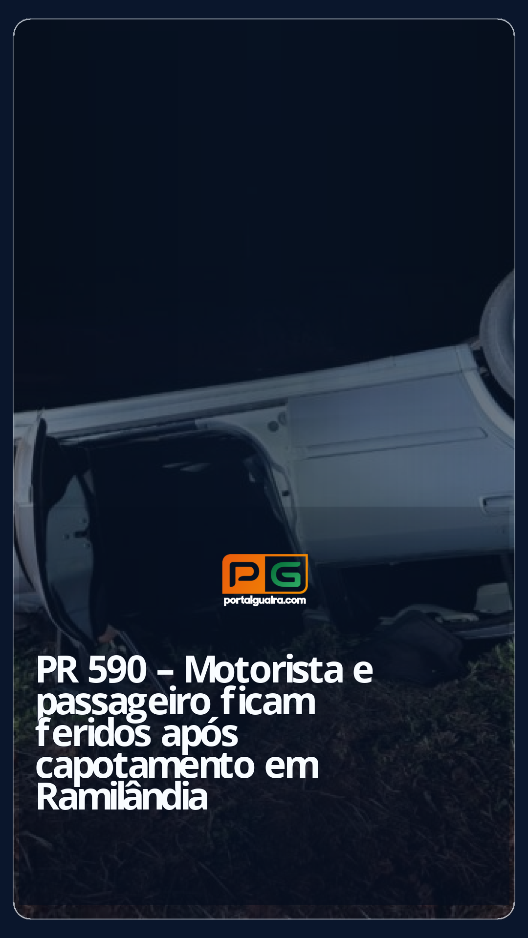 Um capotamento registrado na noite de domingo (23) deixou duas pessoas feridas na PR-590, no trecho que liga a BR-277 ao município de Ramilândia. O acidente ocorreu por volta das 20h20, no km 7 da rodovia.