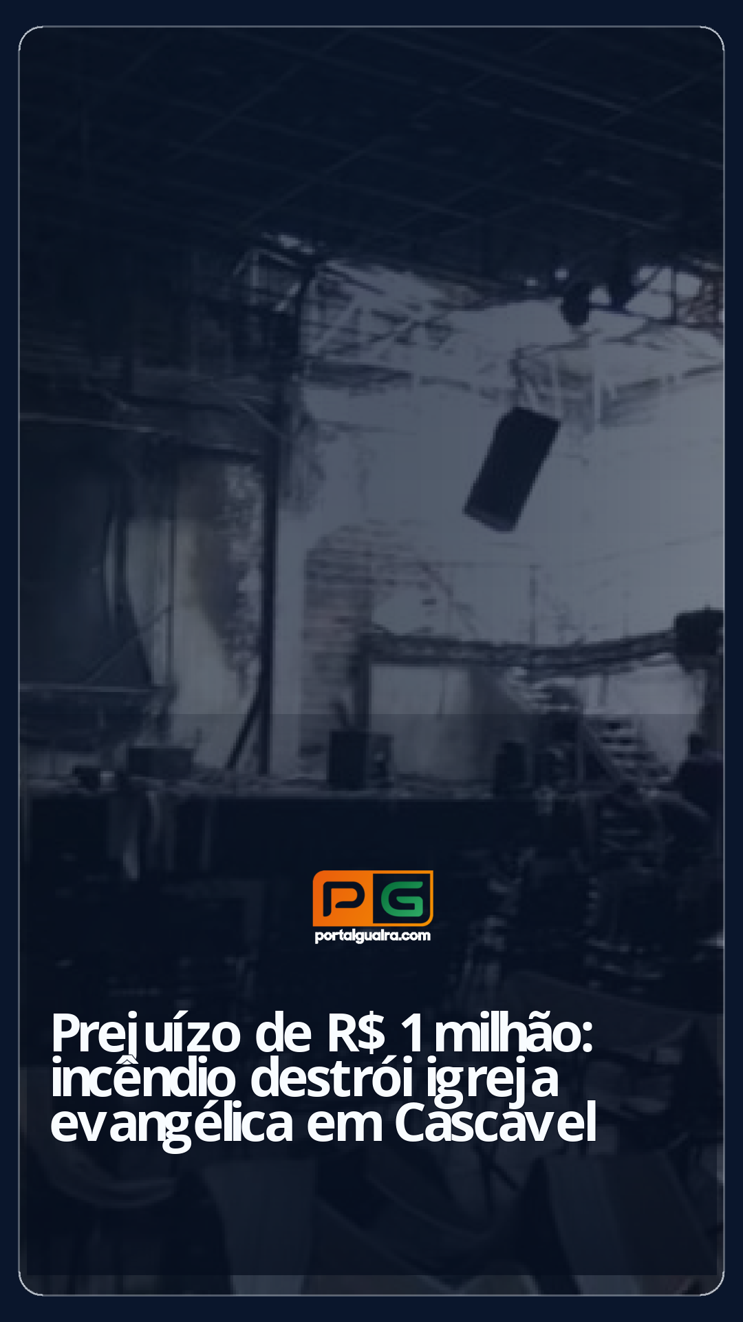Um incêndio destruiu uma igreja evangélica na região central de Cascavel, no oeste do Paraná, na madrugada de quinta-feira (4). Ninguém se feriu.
