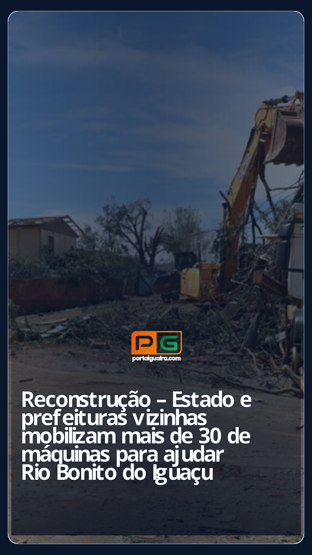 O Governo do Estado do Paraná está mobilizando um grande aparato de maquinários e equipes para o trabalho de limpeza e remoção de entulhos em Rio Bonito do Iguaçu, município atingido por um tornado com ventos de até 250 km/h na última sexta-feira (7).