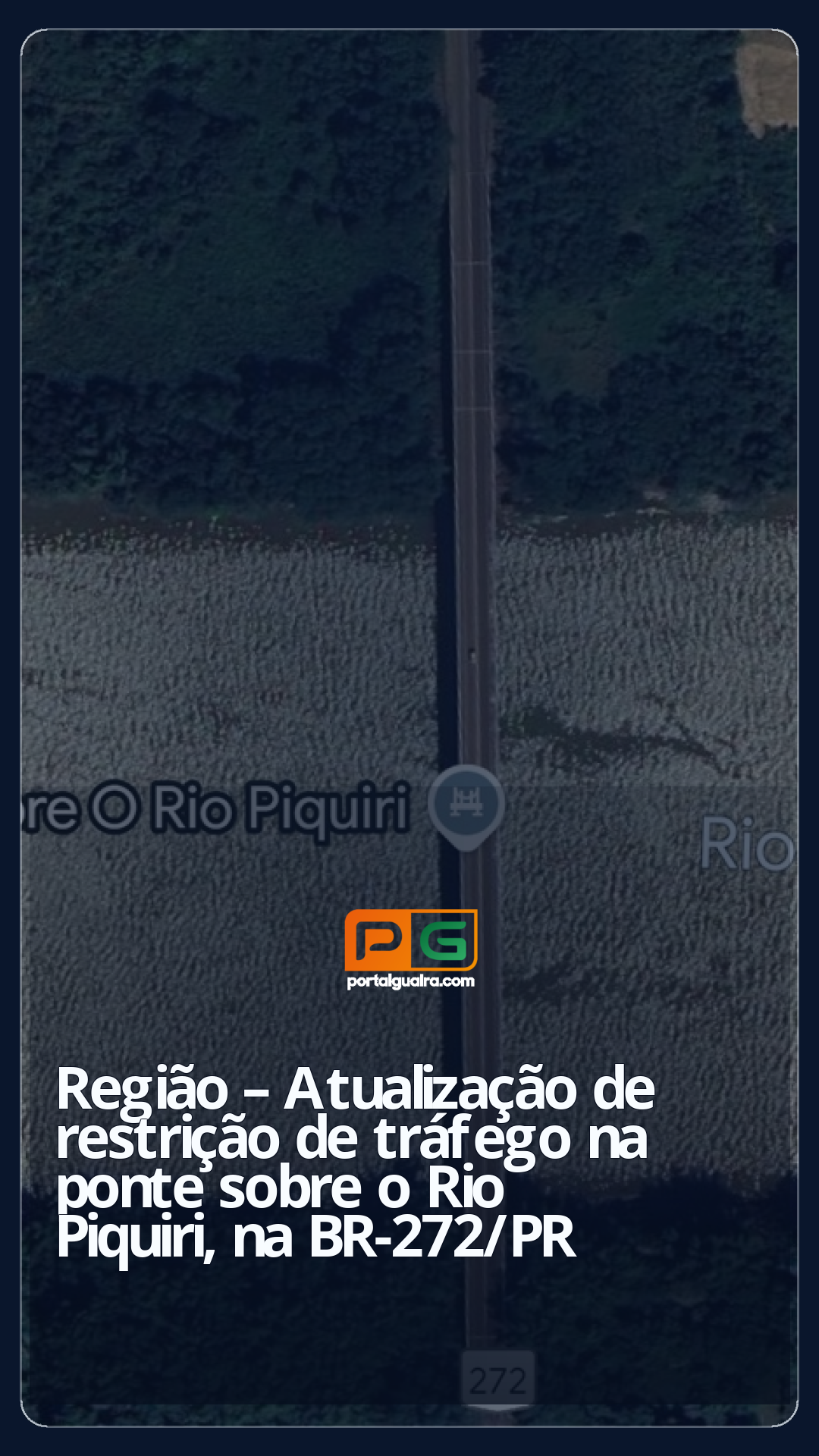 O Departamento Nacional de Infraestrutura de Transportes (DNIT) restringiu, nesta segunda-feira (13), o tráfego de qualquer veículo durante a noite na ponte sobre o Rio Piquiri, no KM 541,79 da BR-272/PR, entre os municípios de Francisco Alves e Guaíra.