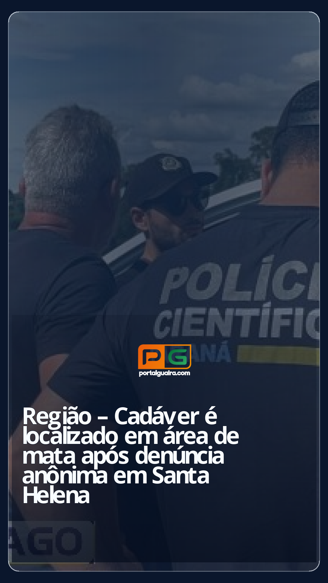 Na tarde de segunda-feira (02), por volta das 14h, a Polícia Civil de Santa Helena localizou um cadáver em meio a uma região de mata na localidade conhecida como Corrêa Porto. A descoberta ocorreu após o recebimento de uma denúncia anônima.