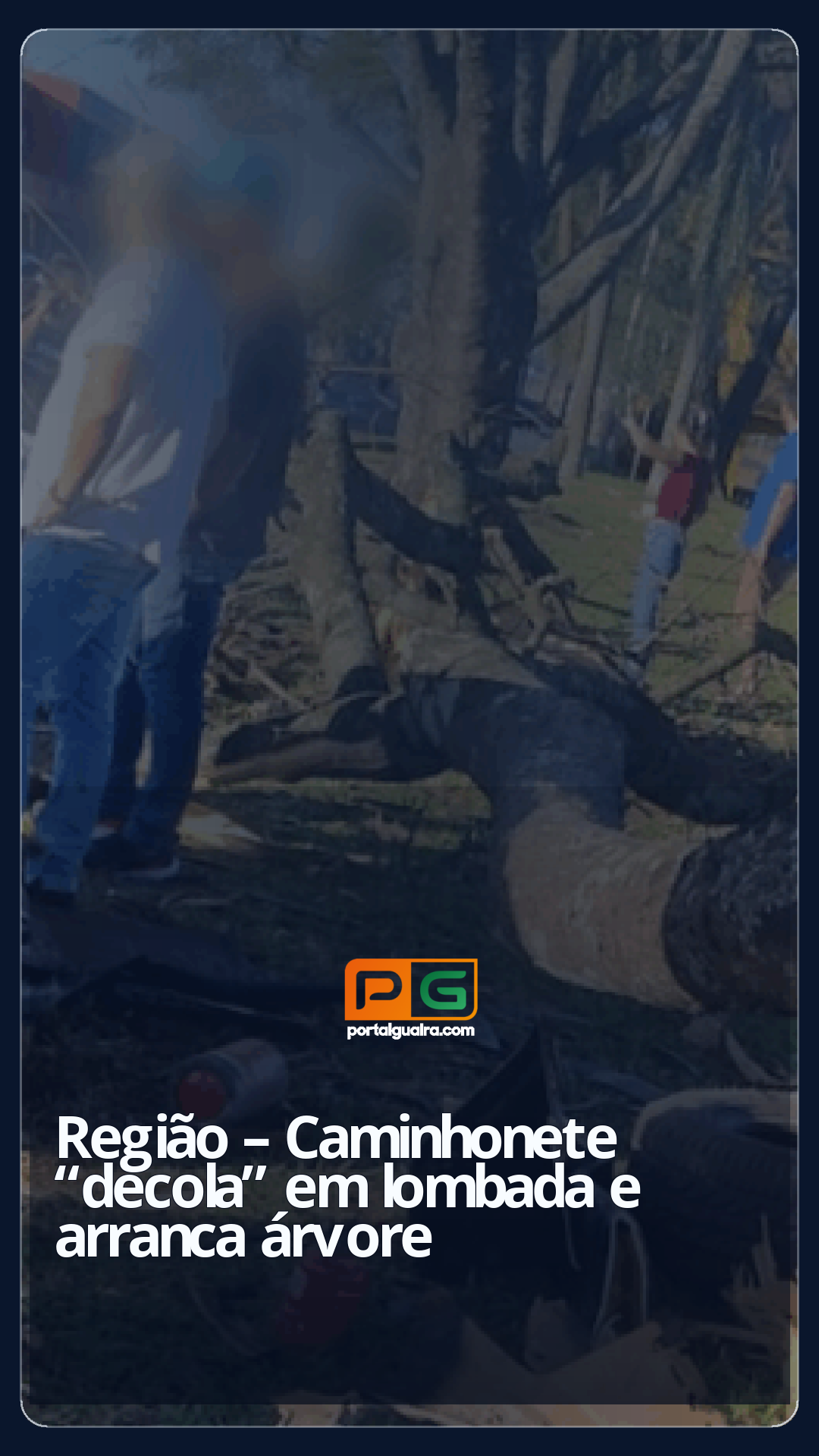 Uma caminhonete trafegava em alta velocidade quando, ao passar por uma lombada elevada, “decolou”, perdeu o controle e colidiu violentamente contra uma árvore localizada entre a marginal e a pista principal. O impacto foi tão forte que a árvore foi arrancada com raiz e tudo.