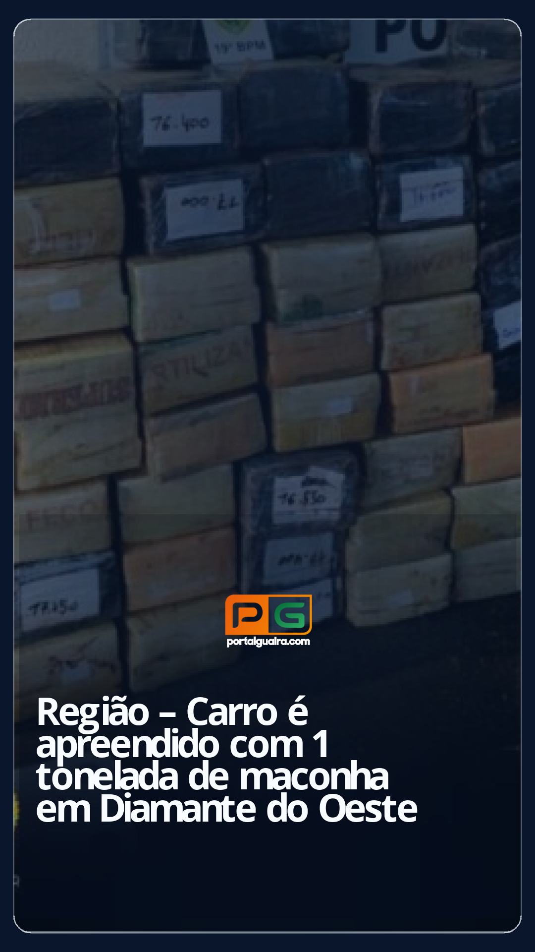 Policiais federais e militares apreenderam um veículo, com registro de furto, que transportava uma tonelada de maconha em uma estrada vicinal de Diamante do Oeste, na manhã de sábado (10).
