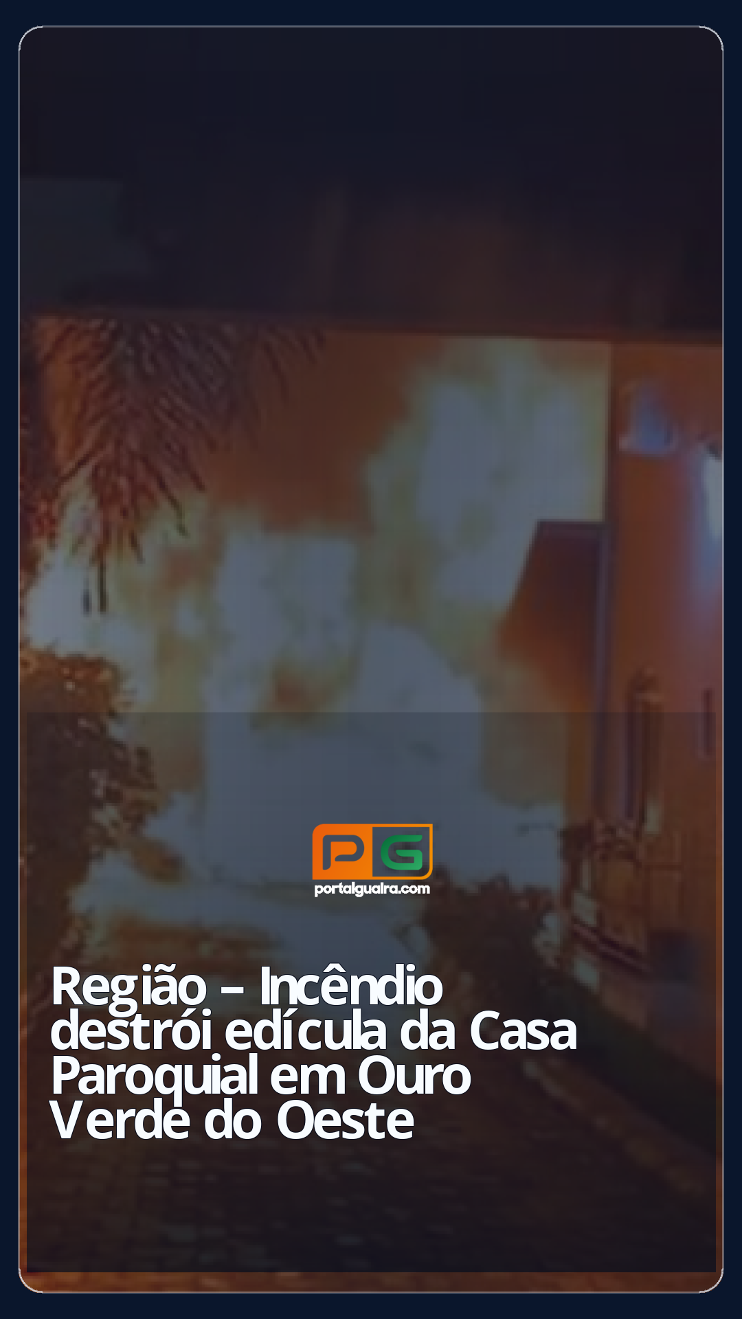 Um incêndio atingiu a edícula da Casa Paroquial da Paróquia Nossa Senhora Aparecida, em Ouro Verde do Oeste, na noite de segunda-feira (1º). O fogo começou após a explosão de um botijão de gás, destruiu totalmente a estrutura e provocou danos em parte da residência ao lado.