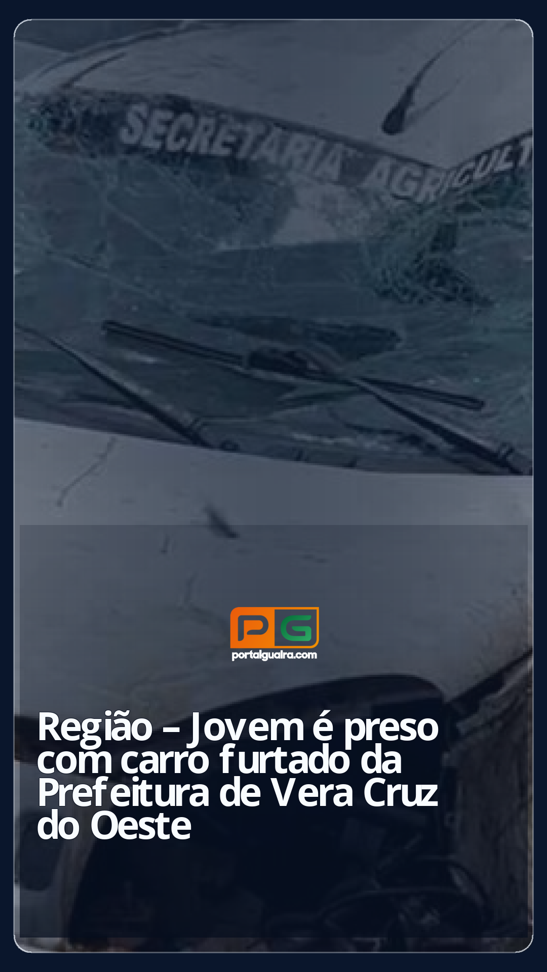 O veículo, um Fiat Uno plotado com identificação da Secretaria de Agricultura do município de Vera Cruz do Oeste, ficou completamente destruído.