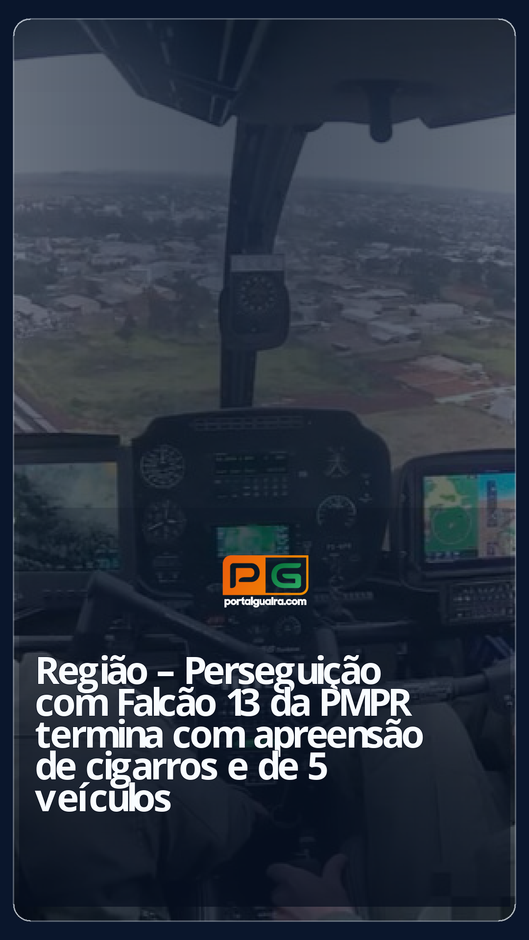 Na manhã de sexta-feira (19), o Batalhão Militar de Operações Aéreas (BPMOA), com o uso do helicóptero Falcão 13, prendeu cinco pessoas e apreendeu cinco veículos que transportavam cargas de cigarros em descaminho nas proximidades de São Pedro do Iguaçu, sentido a Toledo, no Oeste do Estado.