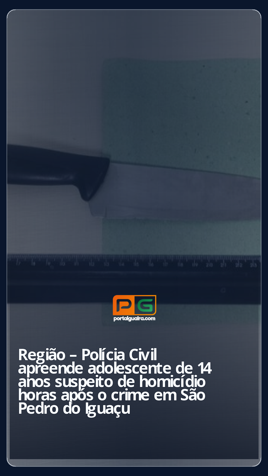 Após o acionamento, as equipes iniciaram uma série de diligências investigativas, que resultaram, poucas horas depois, na localização do suspeito, um adolescente de 14 anos, na Rua Salvador, também na área central do município. Durante a abordagem, o menor admitiu a prática do ato infracional análogo ao crime de homicídio e indicou aos policiais o local onde havia dispensado a faca utilizada, em um terreno situado na Rua Teresina. A arma foi localizada e apreendida.