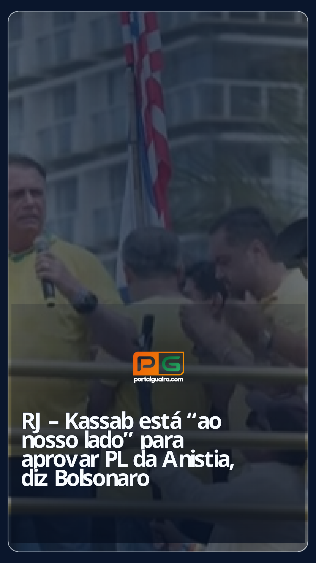 “E deixo claro aqui, esse 50% [de apoio ao projeto] não é PL, não. Tem gente boa em todos os partidos. Eu, inclusive, há poucos dias tinha um velho problema e resolvi com o Kassab, em São Paulo. Ele está ao nosso lado com a sua bancada para aprovar a anistia em Brasília. Todos os partidos estão vindo”, afirmou durante ato pela aprovação da proposta, no Rio de Janeiro.