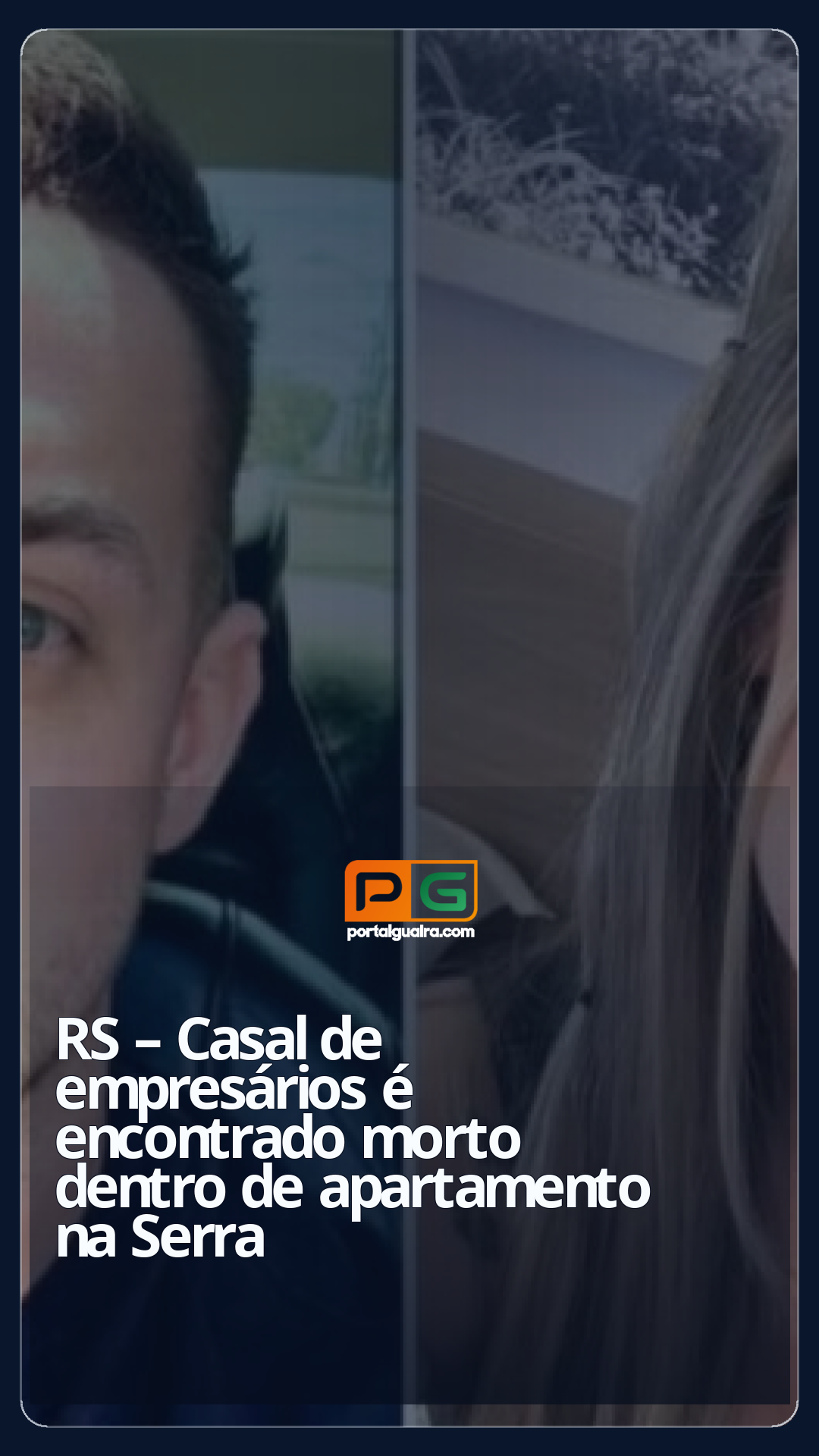 Um casal de empresários foi encontrado morto dentro do apartamento onde moravam em Canela, na Serra do RS. Segundo a Polícia Civil, Yasmin Schaefer da Luz, 30 anos, e Bruno Rocha da Luz, 31 anos, estavam sobre a cama em um quarto. Os dois tinham marcas de tiros na cabeça.