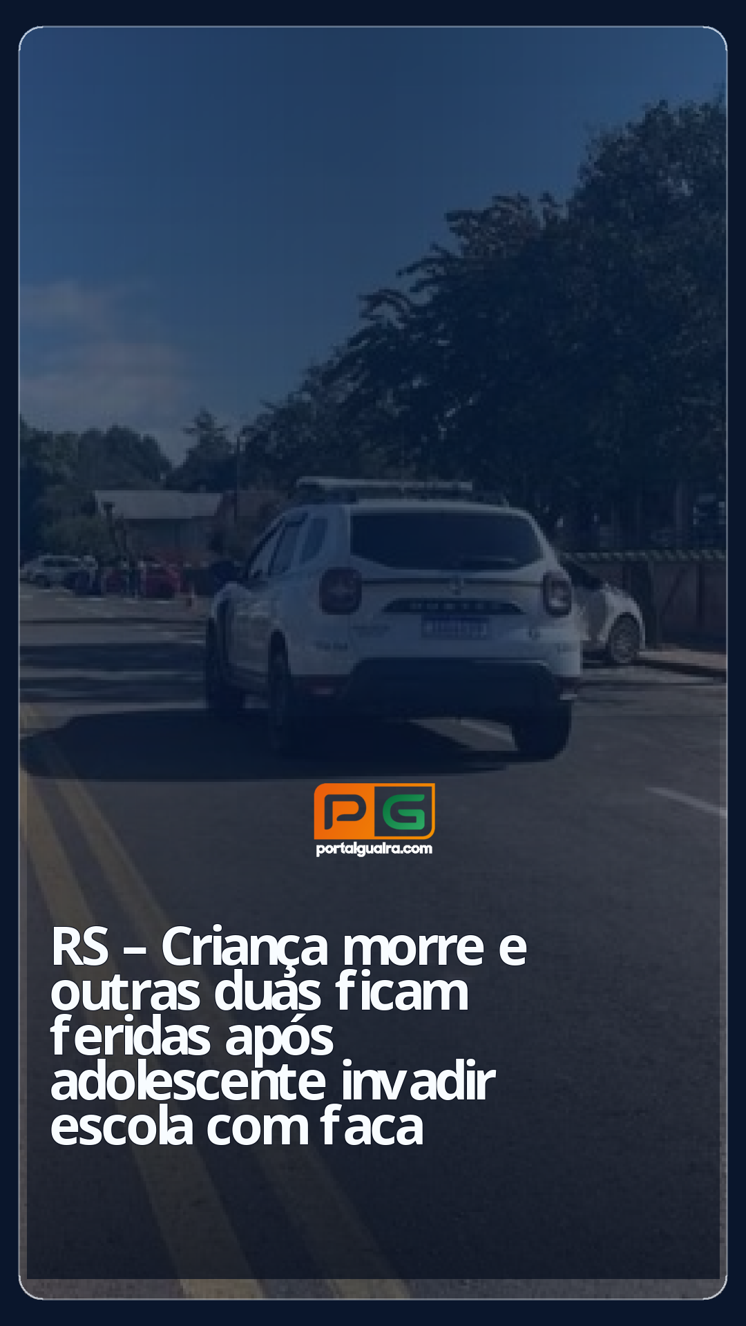 Um adolescente invadiu a Escola Municipal Maria Nascimento Giacomazzi, em Estação, na Região Norte do RS, e feriu ao menos três crianças e uma professora com golpes de faca por volta das 10h de terça-feira (8). Uma das crianças foi encaminhada para atendimento médico, mas não resistiu e teve a morte confirmada, segundo o prefeito Geverson Zimmermann.