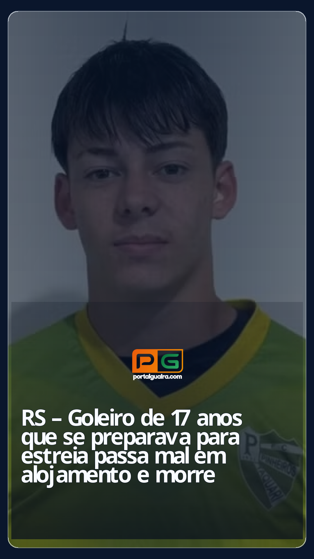 Um goleiro de 17 anos morreu após passar mal no alojamento do clube em que jogava, em Taquari, na Região dos Vales. Kelvin Kenaldy da Silva chegou a ser socorrido, mas morreu no hospital.