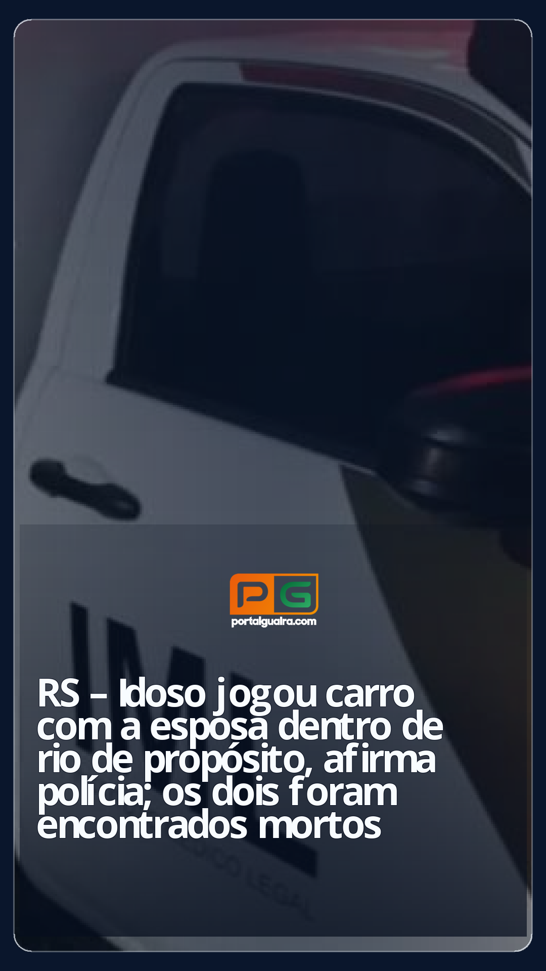 A Polícia Civil confirma que o idoso encontrado morto junto da esposa dentro de um carro submerso em Estrela, na Região dos Vales, jogou o veículo de propósito dentro do Rio Taquari.