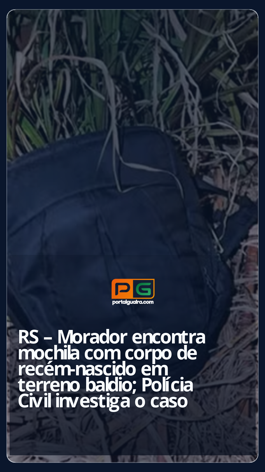 Um morador encontrou uma mochila com o corpo de um recém-nascido em um terreno baldio em São Borja, na Fronteira Oeste do RS. A Polícia Civil instaurou um inquérito na segunda-feira (7) para apurar o caso.