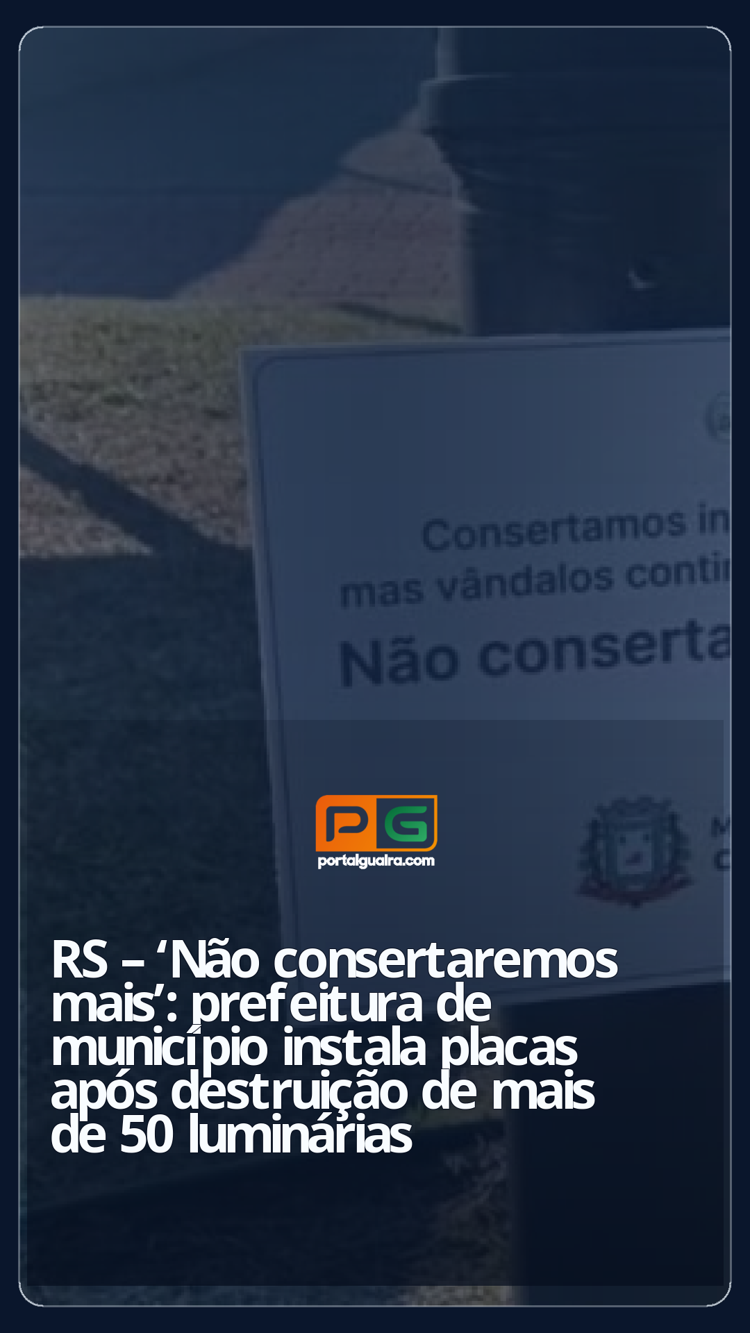 Quem passeia pelo Parcão Sady Arnildo Schmidt, em Campo Bom, na Região Metropolitana de Porto Alegre, pode encontrar mais do que área verde e bancos, pode topar também com uma placa de tom direto pendurada em postes de luz: “Não consertaremos mais!”. Veja acima.