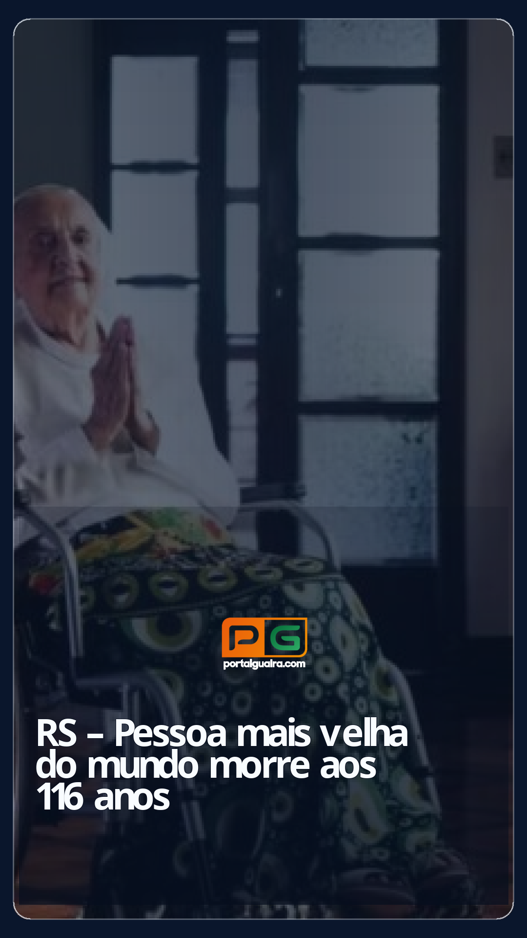 A gaúcha Inah Canabarro Lucas, a pessoa mais velha no mundo, morreu aos 116 anos na quarta-feira (30). Ela nasceu em 1908, na cidade de São Francisco de Assis, na Região Central do RS. A informação foi confirmada pela família.