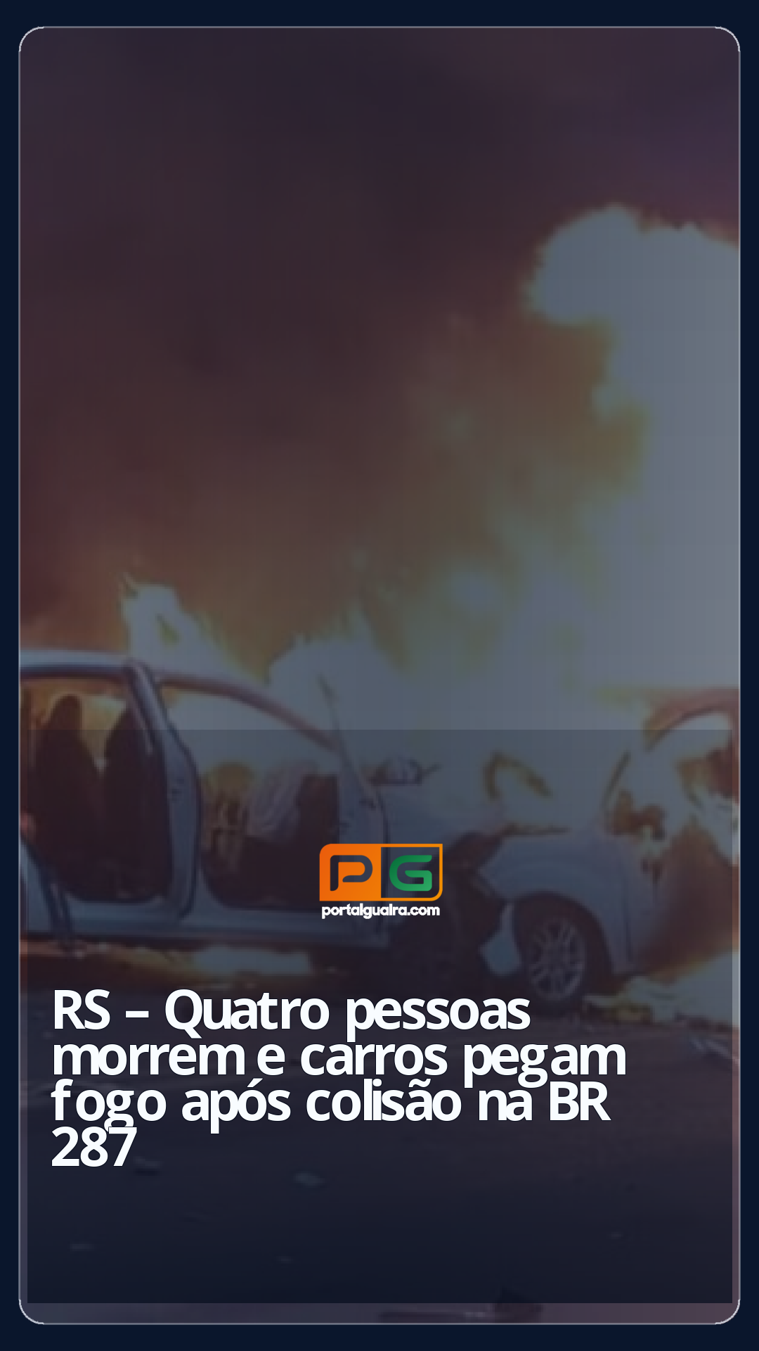 Quatro pessoas morreram e três ficaram feridas após um grave acidente na BR-287, em Jaguari, na Região Central do RS, na segunda-feira (9). De acordo com a Polícia Rodoviária Federal (PRF), a colisão foi registrada por volta de 6h30, na altura do km 363, e envolveu dois veículos e uma motocicleta.