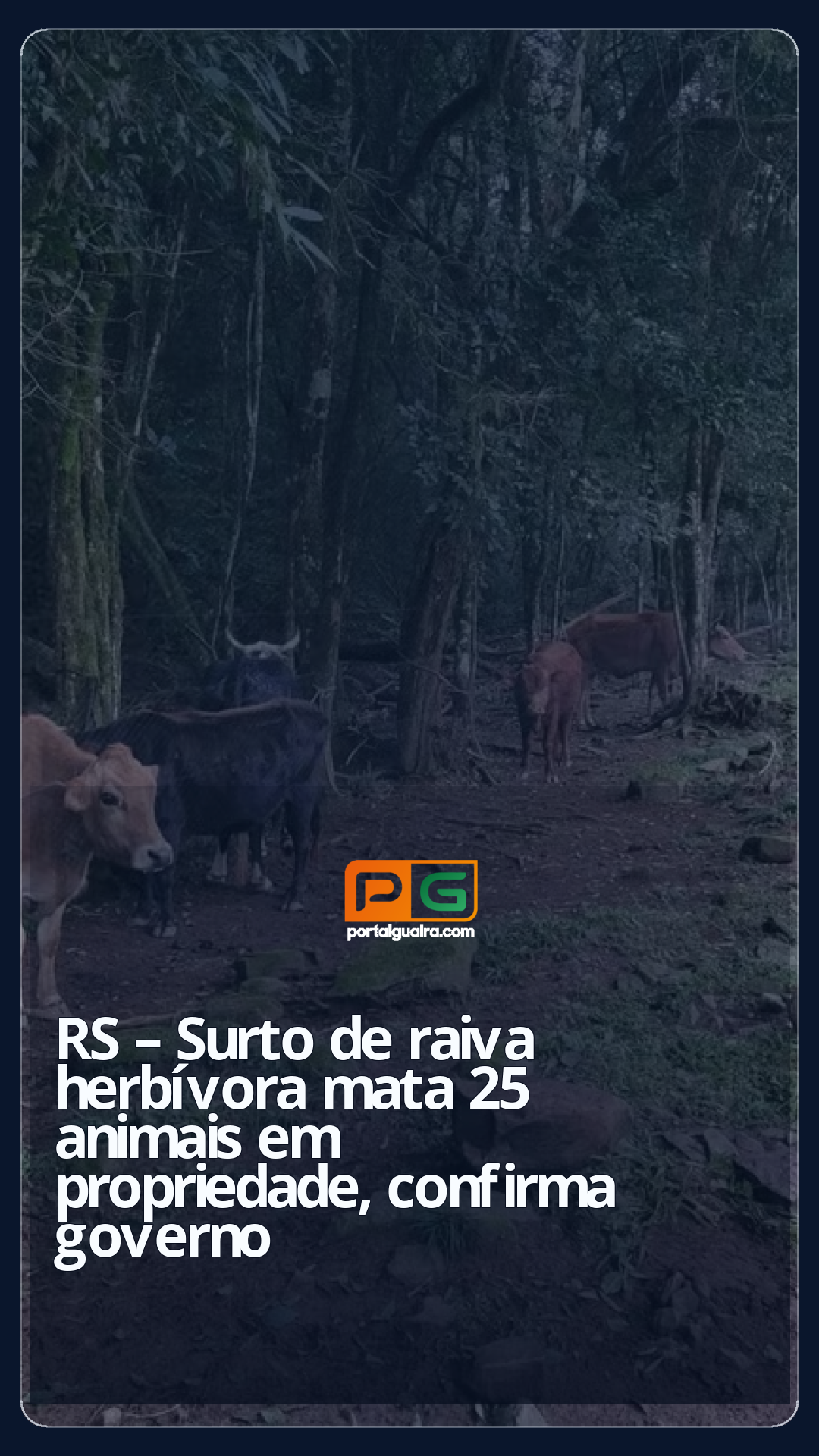 Um surto de raiva herbívora causou as mortes de 24 bovinos e um equino em uma propriedade na localidade de Rincão dos Antunes, em Eugênio de Castro, no Noroeste do RS.