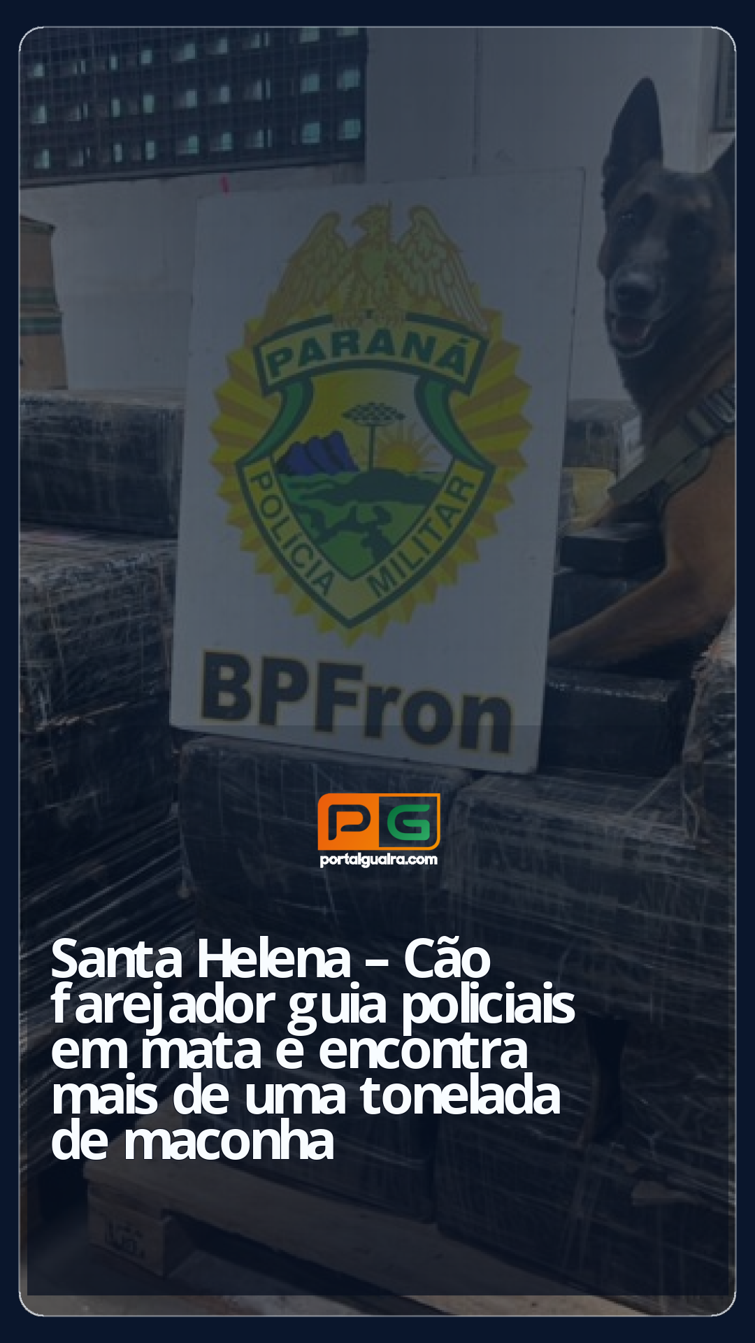 Um cão farejador do Batalhão de Polícia de Fronteira (BPFron) localizou mais de uma tonelada de maconha durante operação, no último sábado (10), em Santa Helena. A ação faz parte da Operação Protetor.