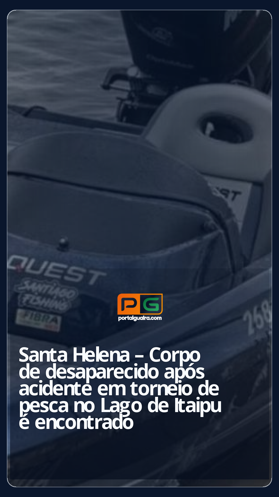 Um acidente envolvendo duas embarcações durante o 12º Torneio de Pesca Esportiva ao Tucunaré, em Santa Helena, resultou em cinco feridos e um desaparecido. O desaparecido foi prontamente identificado como Matheus Izaias Berta.
