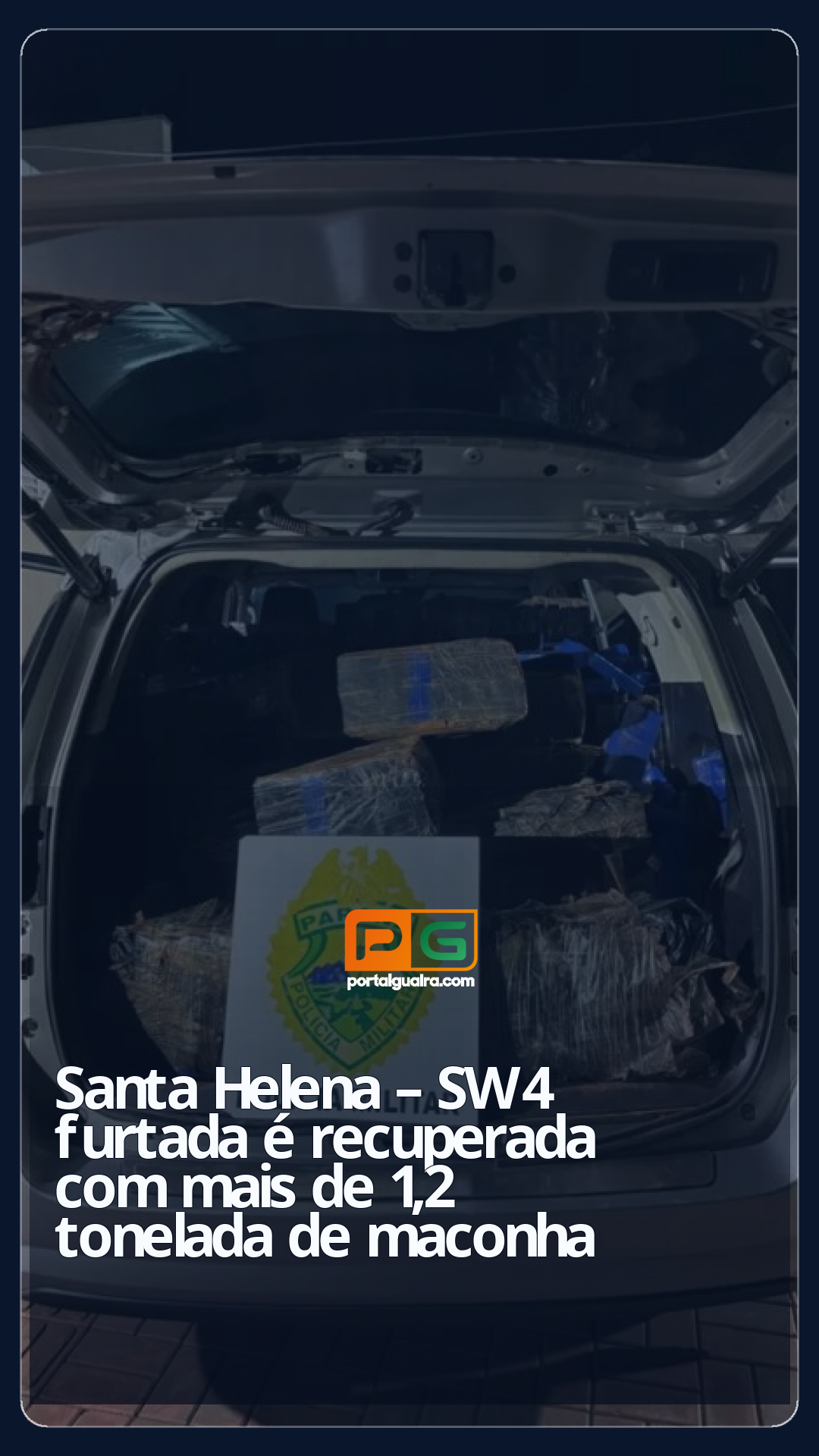 Uma ação da Polícia Militar resultou na recuperação de um veículo furtado e na apreensão de mais de 1,2 tonelada de maconha na madrugada de sábado (24), em Santa Helena.