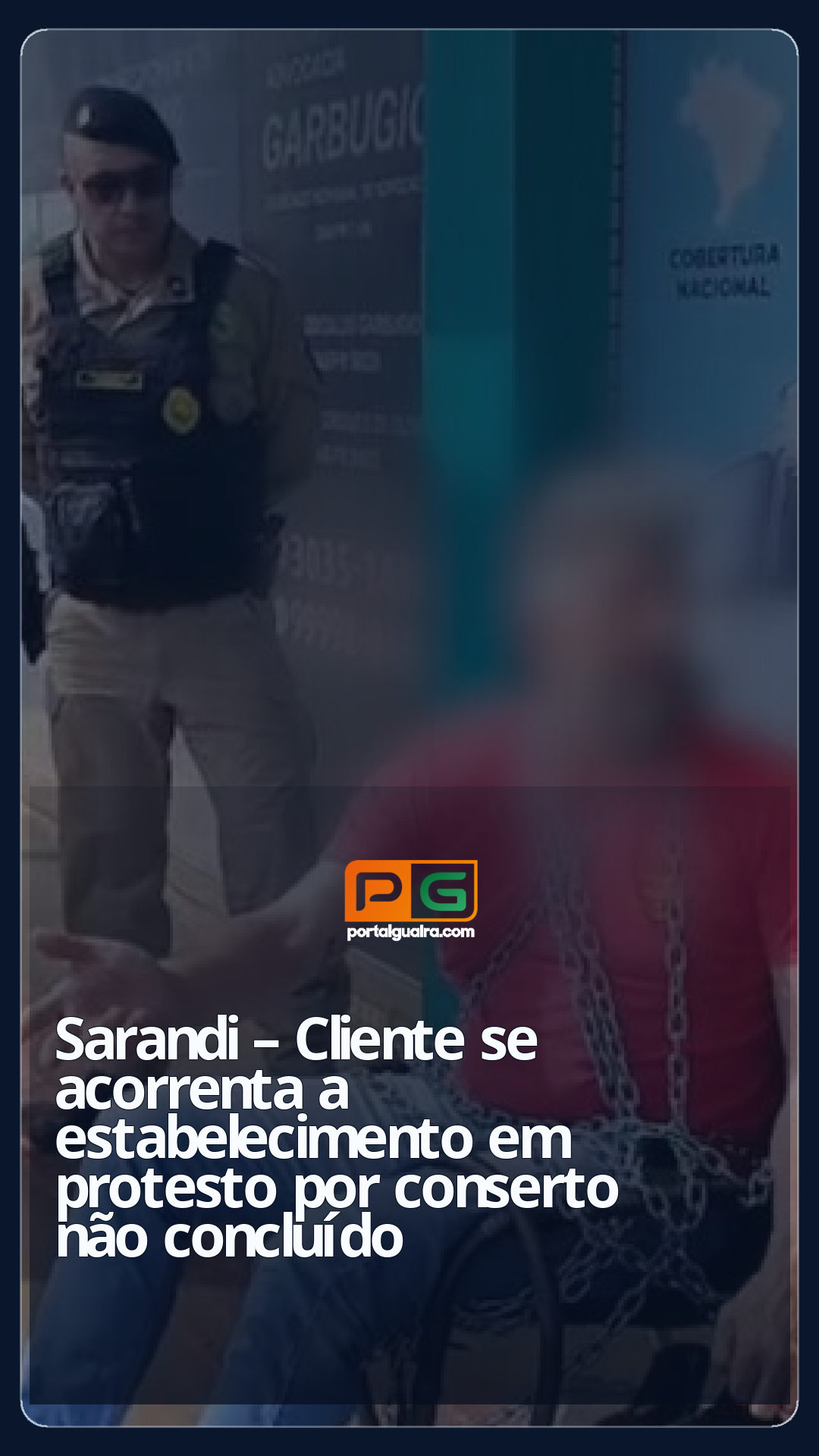 Um homem se acorrentou à porta de estabelecimento comercial no Centro de Sarandi na manhã de segunda-feira (6), em protesto por serviço de conserto de veículo que, segundo ele, ainda não havia sido concluído desde junho.